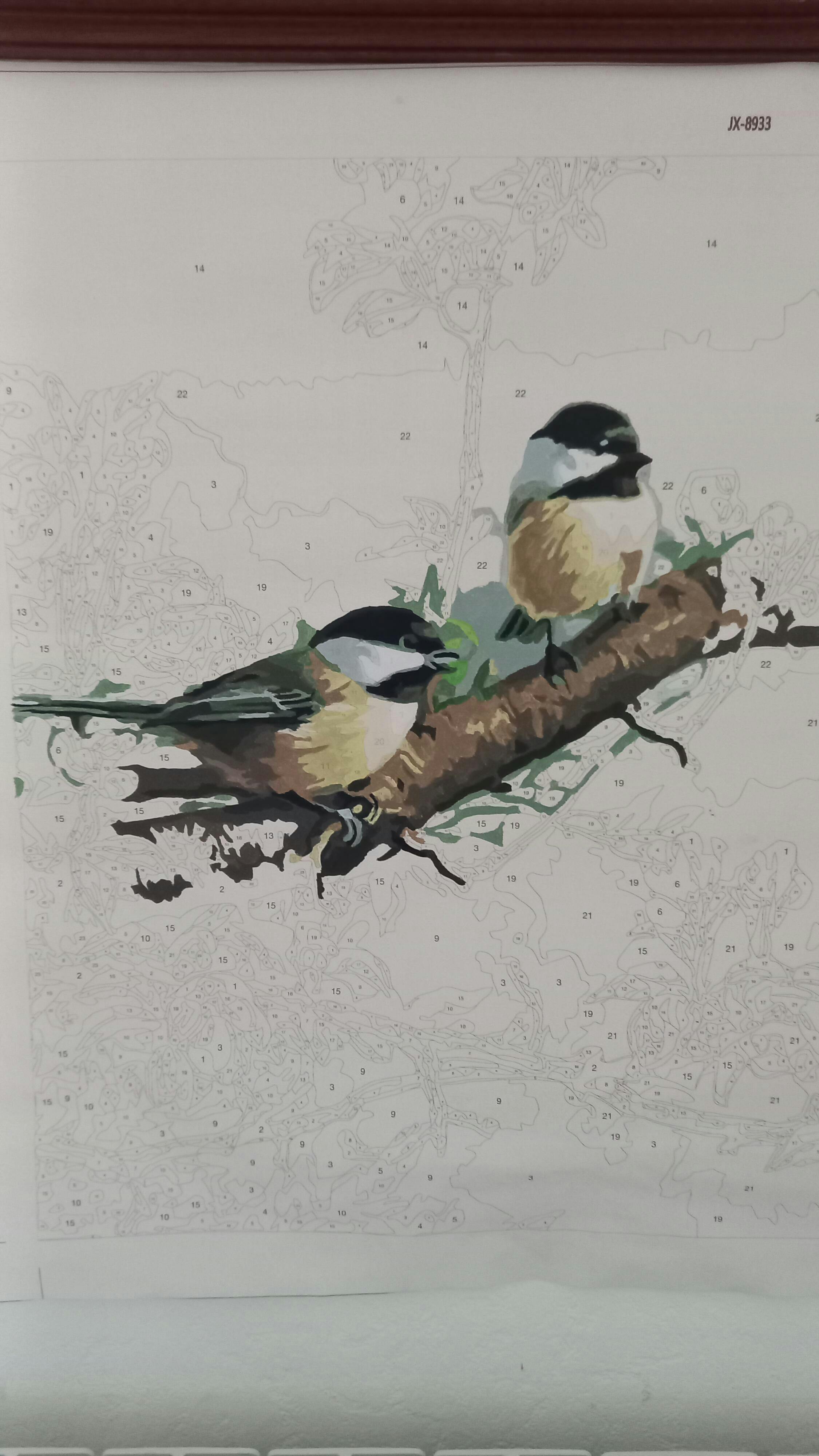 Mésanges sur la Branche de Fleurs Peinture par Numéros