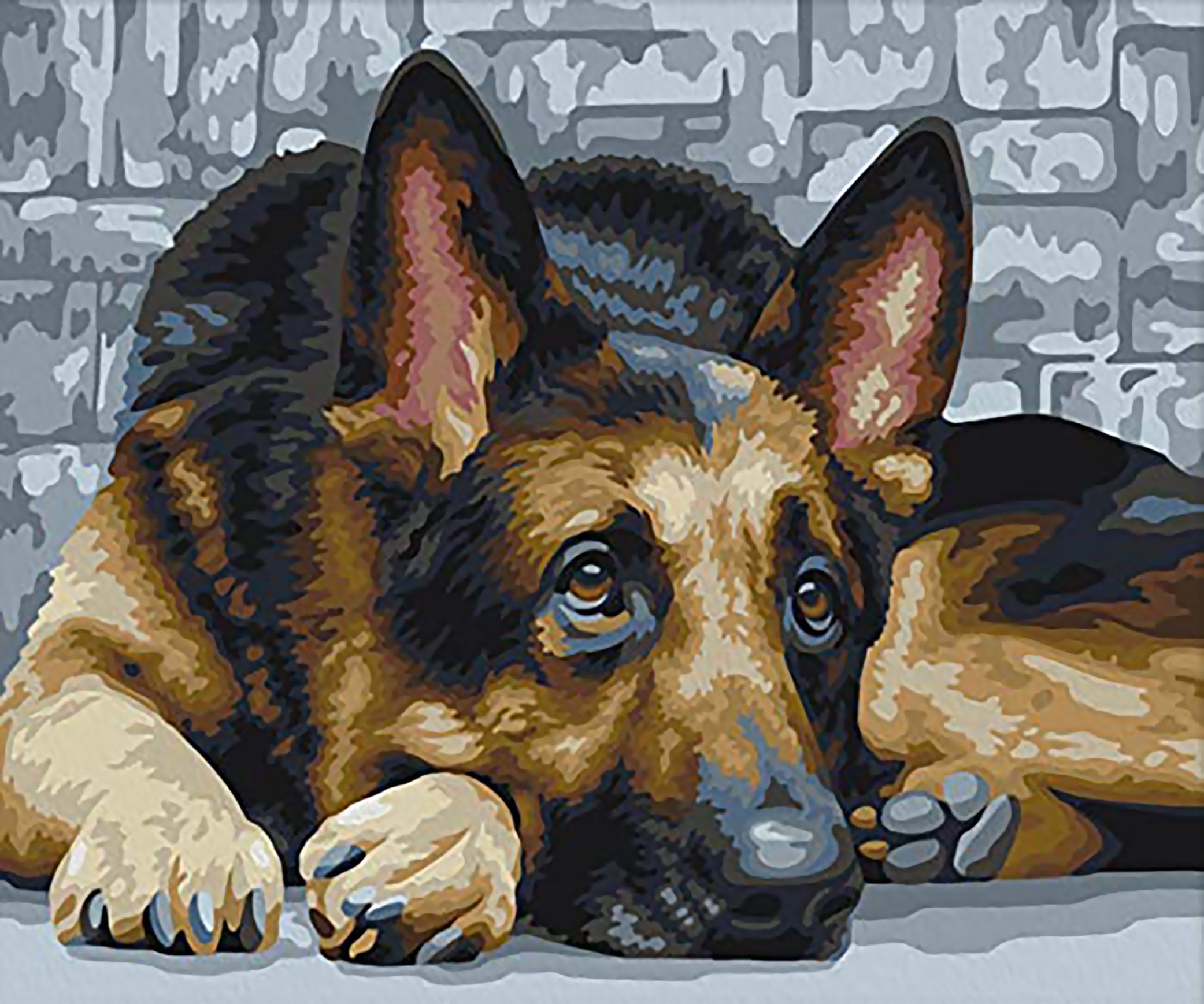 Berger Allemand Assis en Position Couchée Peinture par Numéros