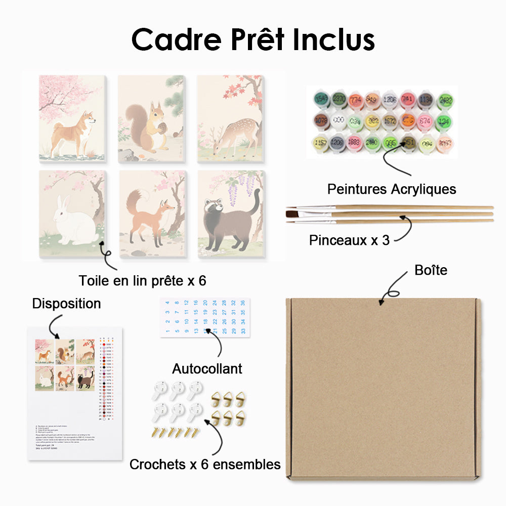 Animaux sous les Arbres en Fleurs 6 Mini Peintures par Numéros