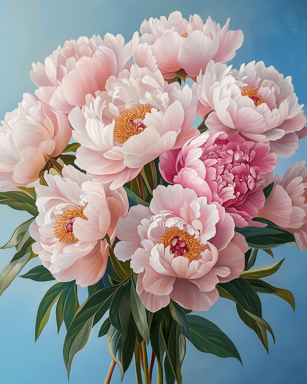 Bouquet de Pivoines Roses avec Feuilles Vertes Peinture par Numéros