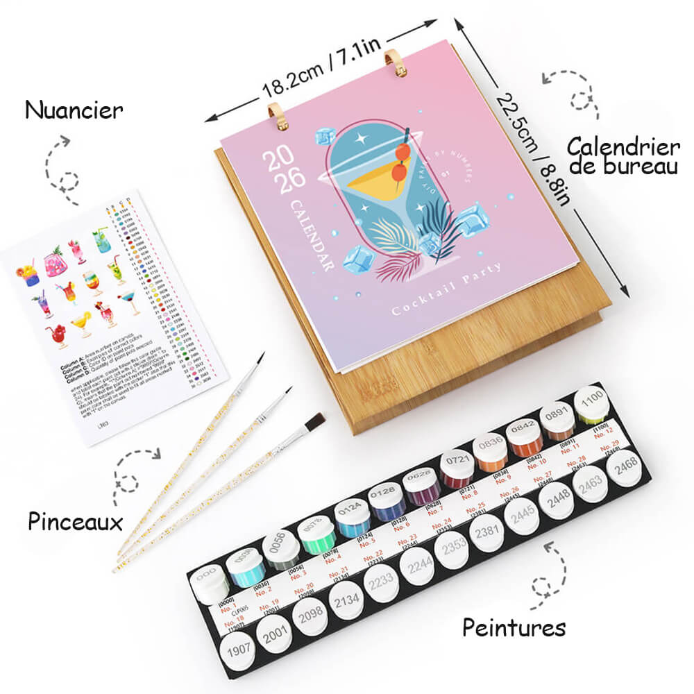 Calendrier de Bureau 2026 Peinture par Numéros | Cocktails Délicieux