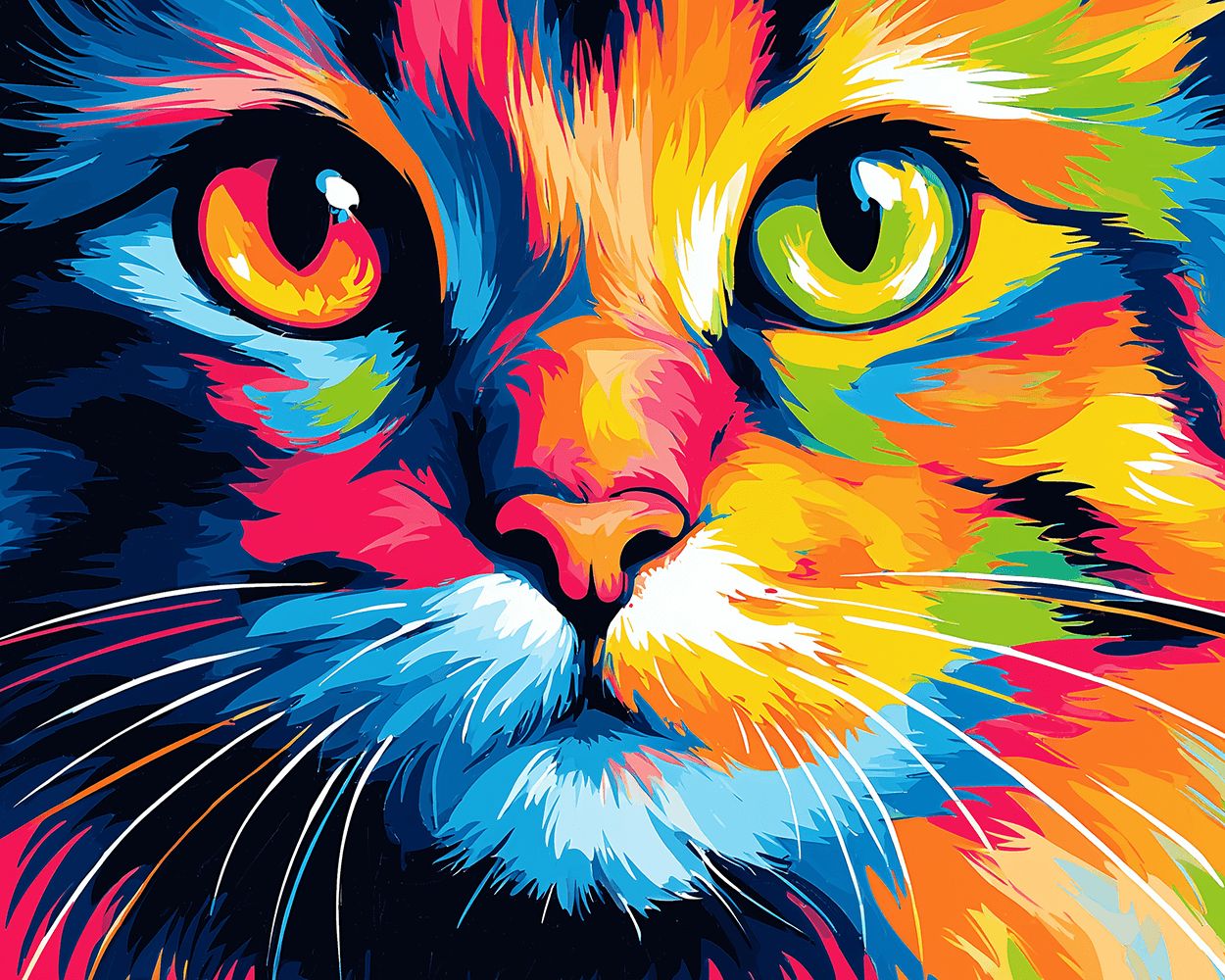 Chat Coloré aux Yeux Différents Peinture par Numéros
