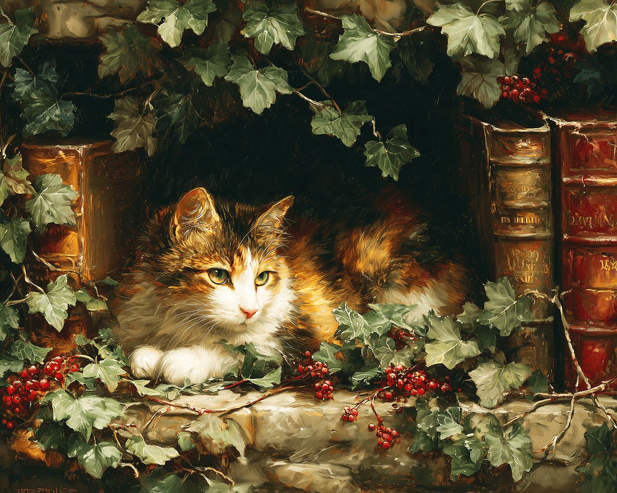 Chat Entouré de Vignes à Baies Peinture par Numéros