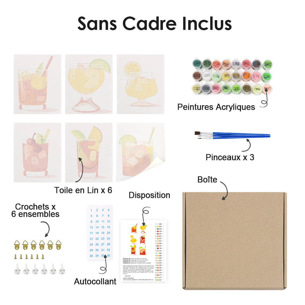 Cocktail au Citron avec Glace 6 Mini Peintures par Numéros