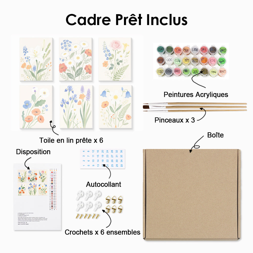Fleurs et Feuilles Simples et Pures 6 Mini Peintures par Numéros