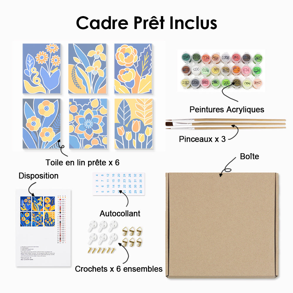 Fleurs Jaunes sur Fond Bleu 6 Mini Peintures par Numéros