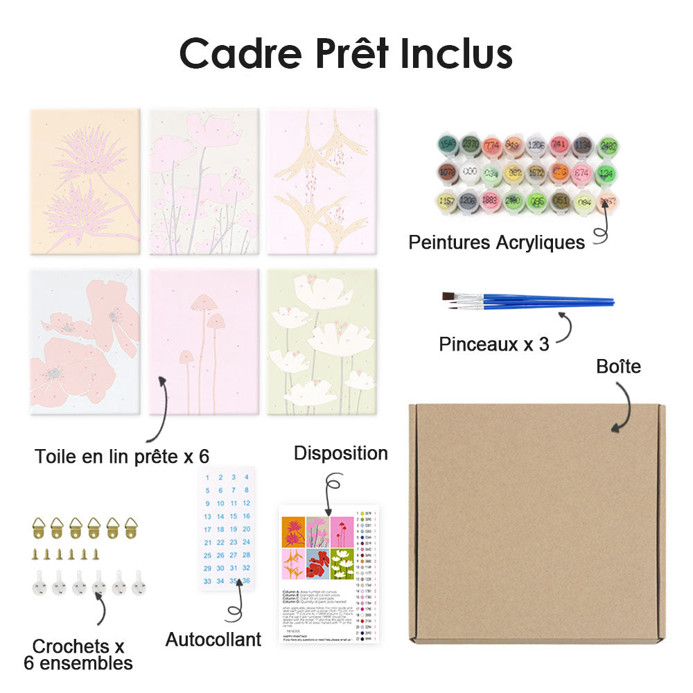 Fleurs Simples 6 Mini Peintures par Numéros