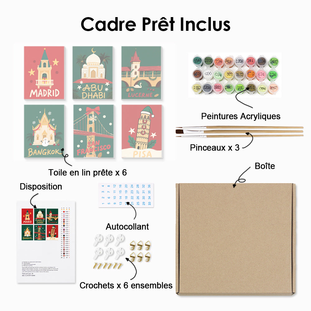 Monuments Célèbres Célébrent Noël 6 Mini Peintures par Numéros