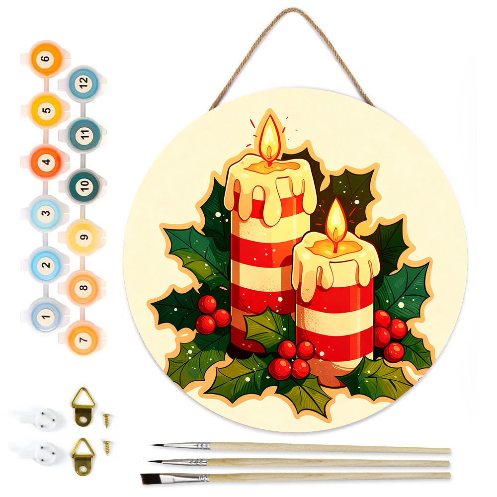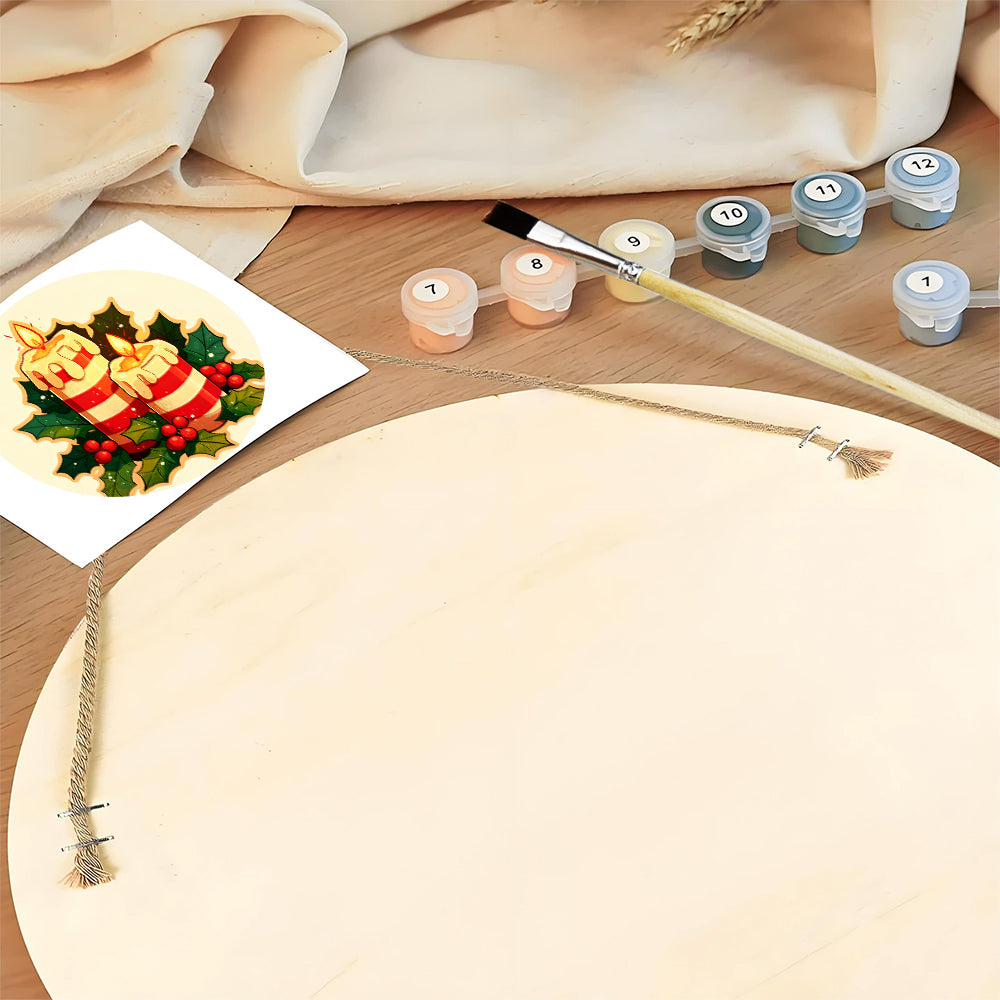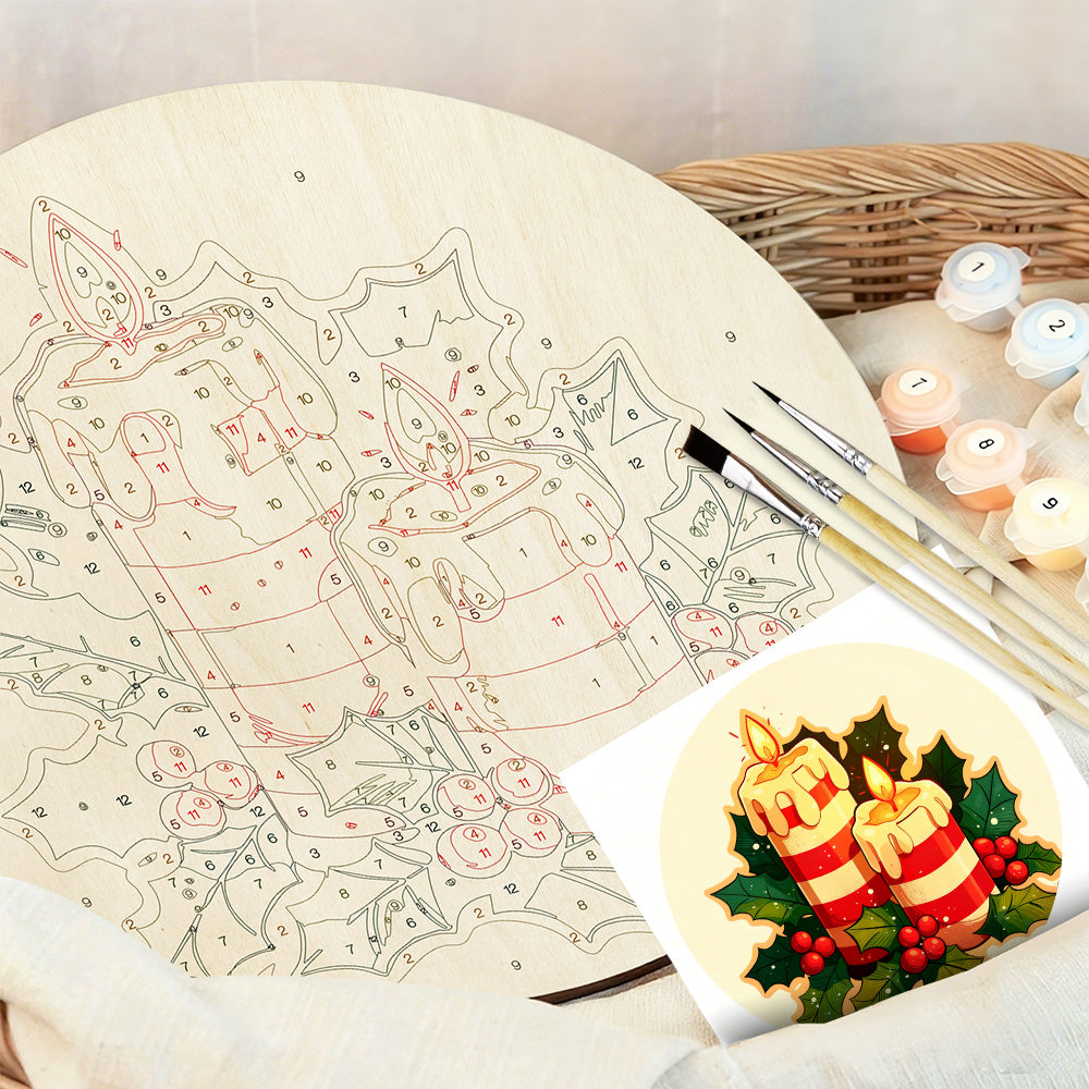 Peinture par Numéros sur Tranche de Bois - Bougies de Noël