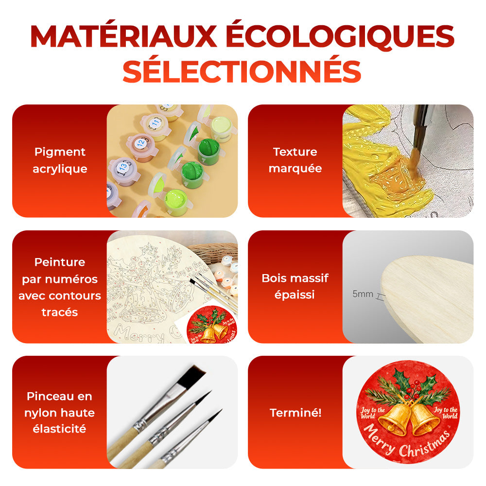 Peinture par Numéros sur Tranche de Bois - Cloches de Noël