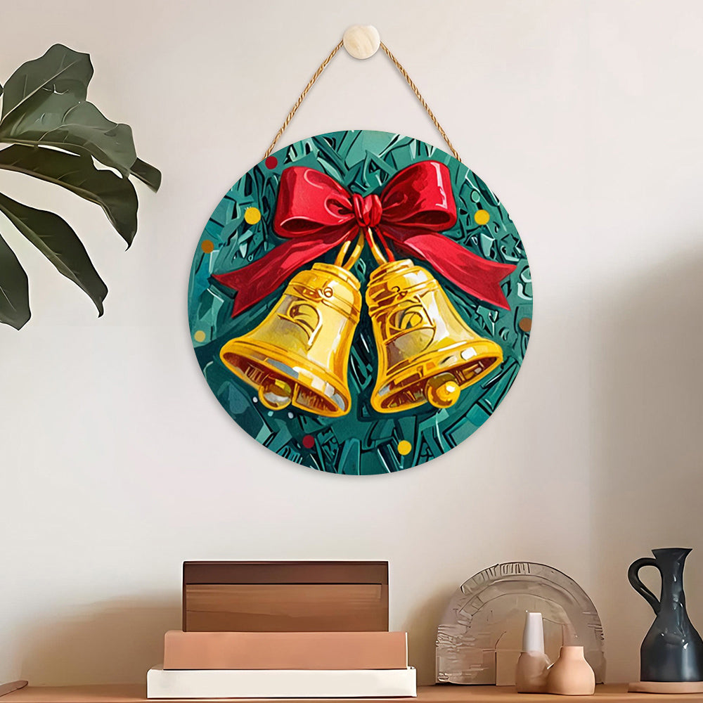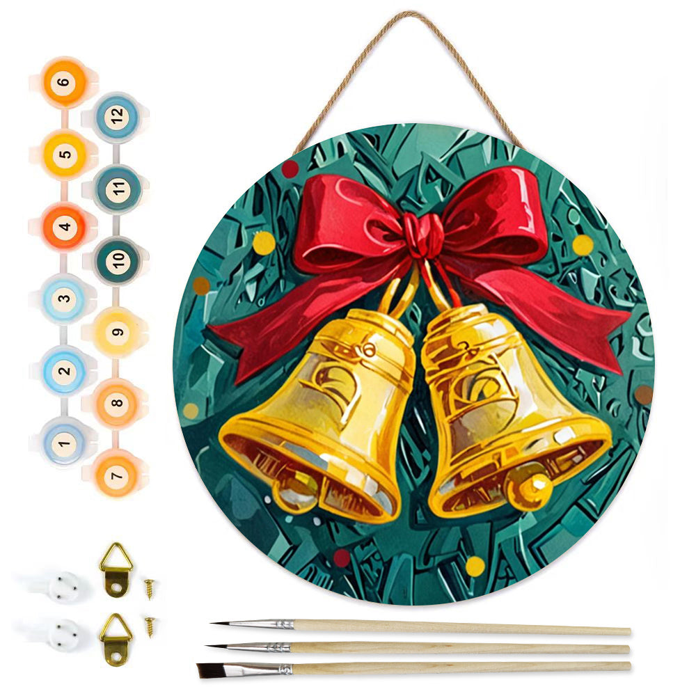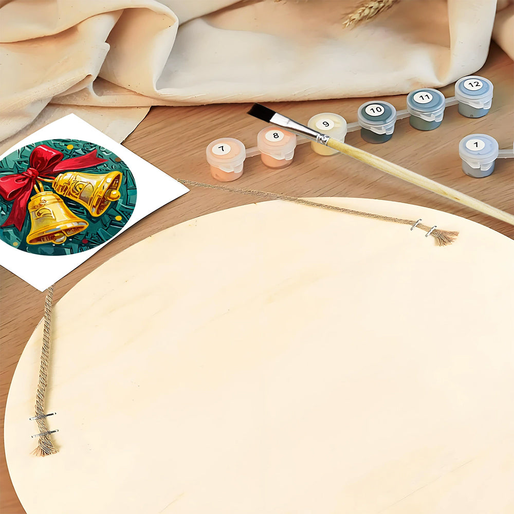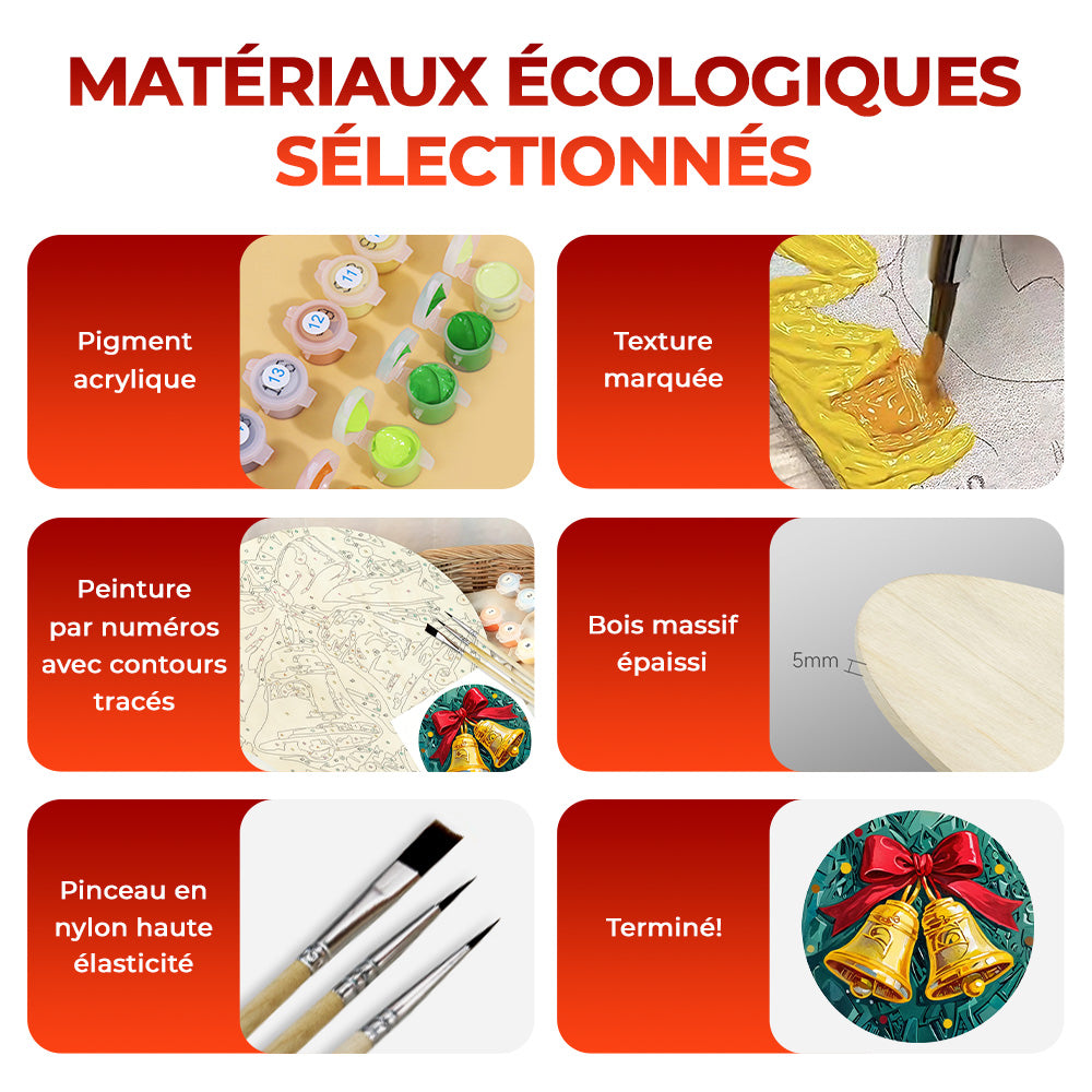 Peinture par Numéros sur Tranche de Bois - Cloches de Noël sur le Sapin