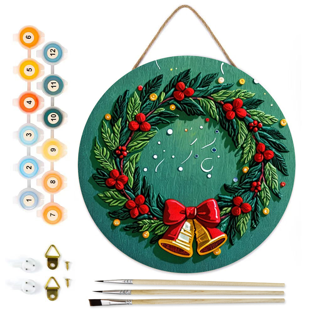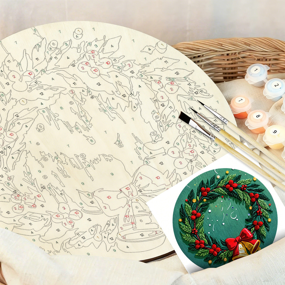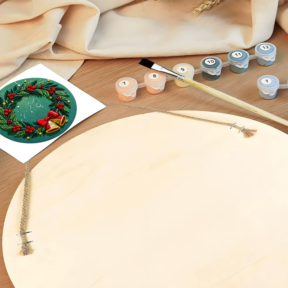 Peinture par Numéros sur Tranche de Bois - Couronne de Noël avec Cloches