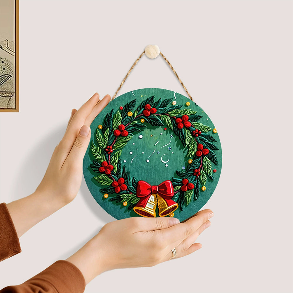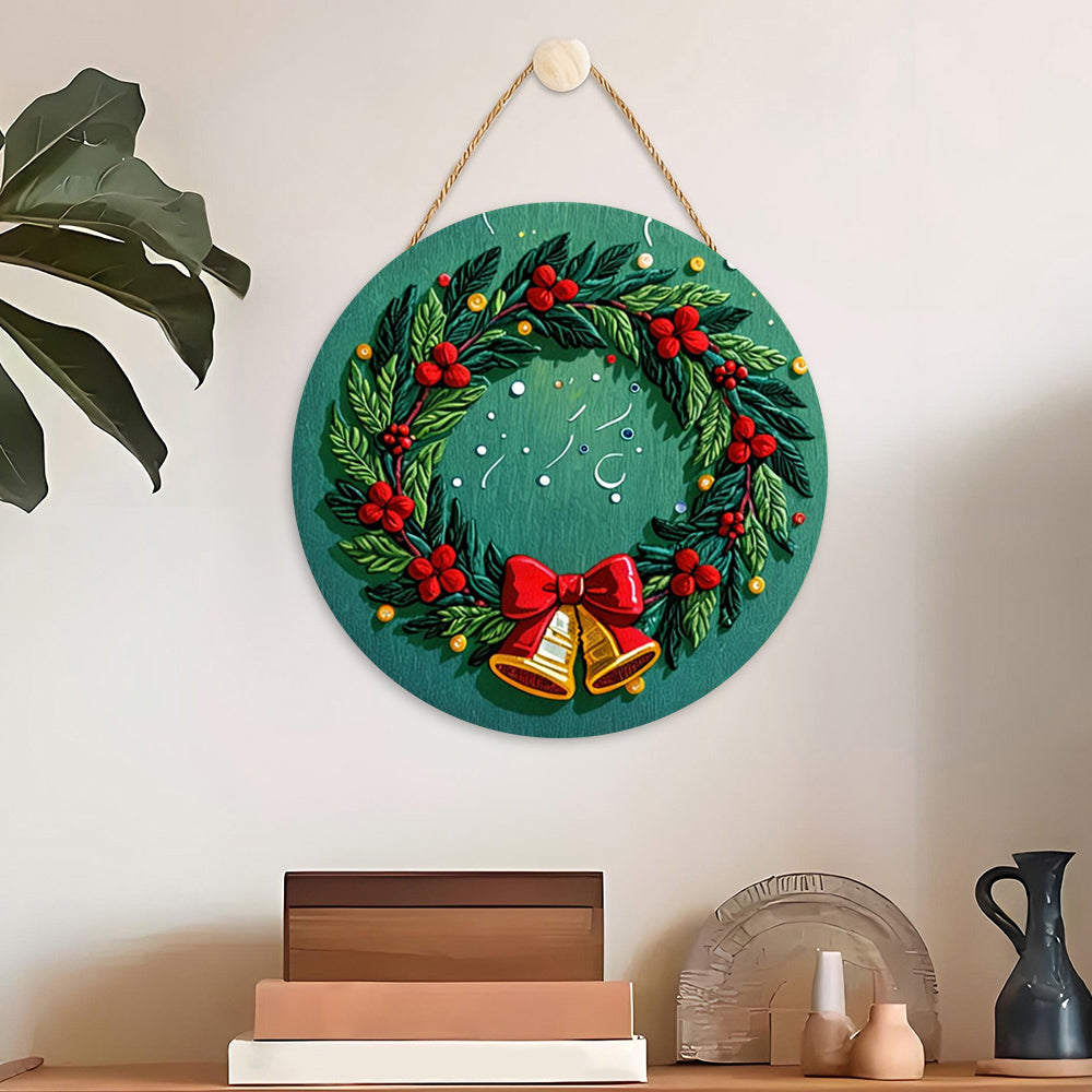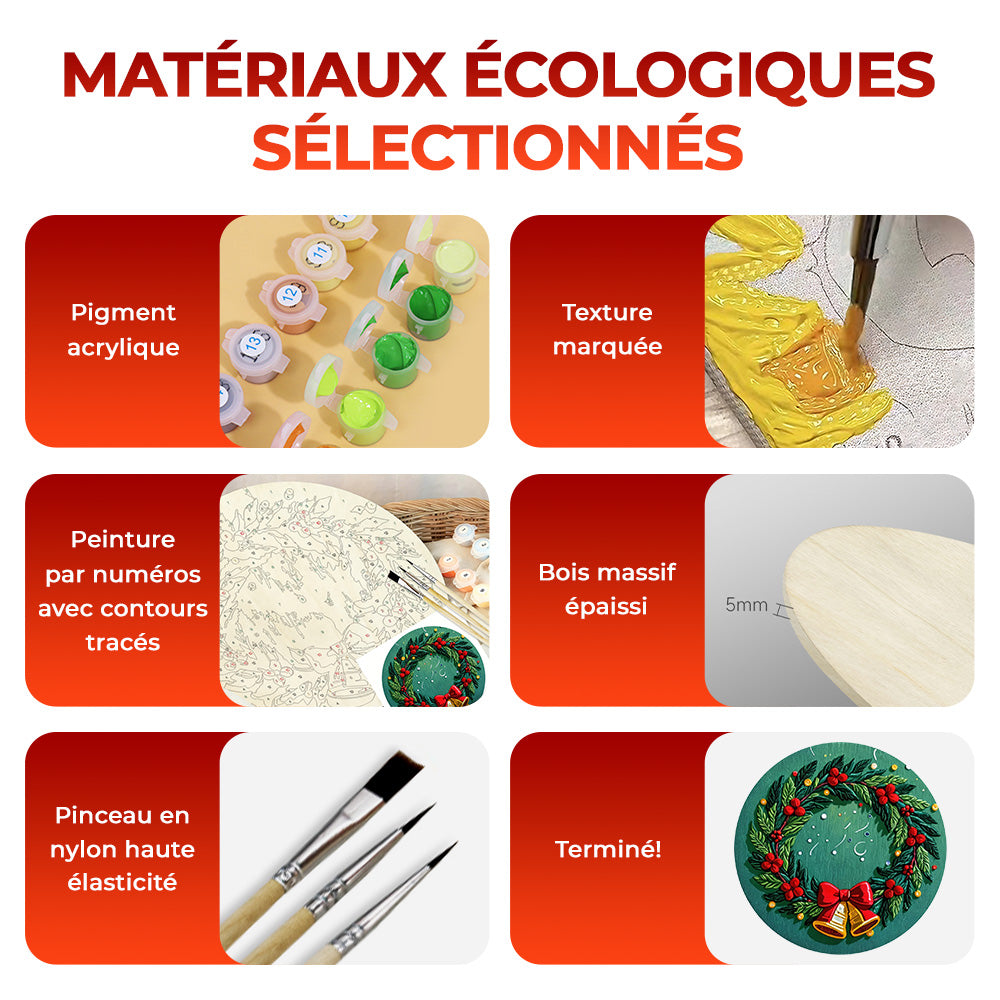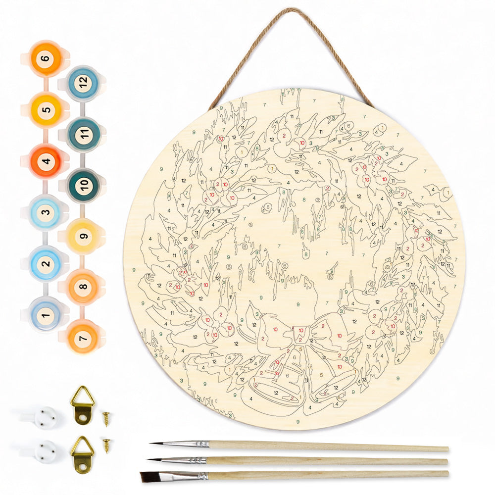 Peinture par Numéros sur Tranche de Bois - Couronne de Noël avec Cloches