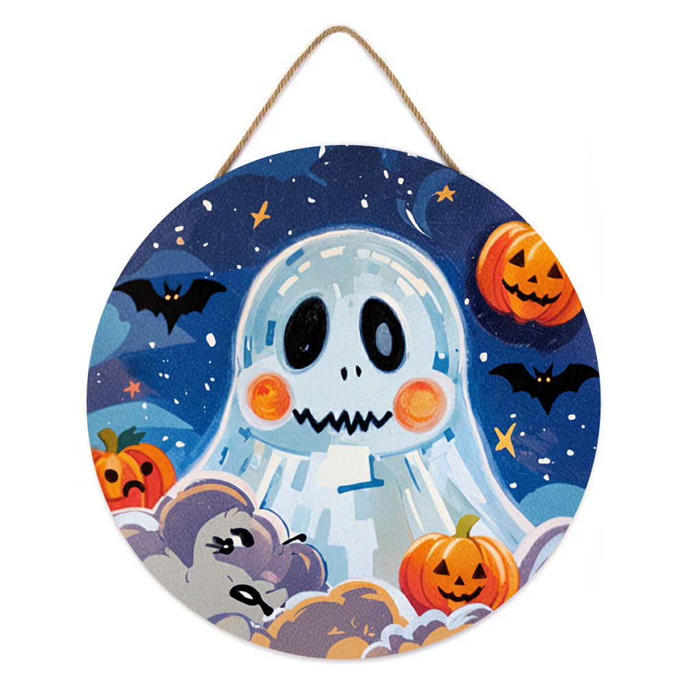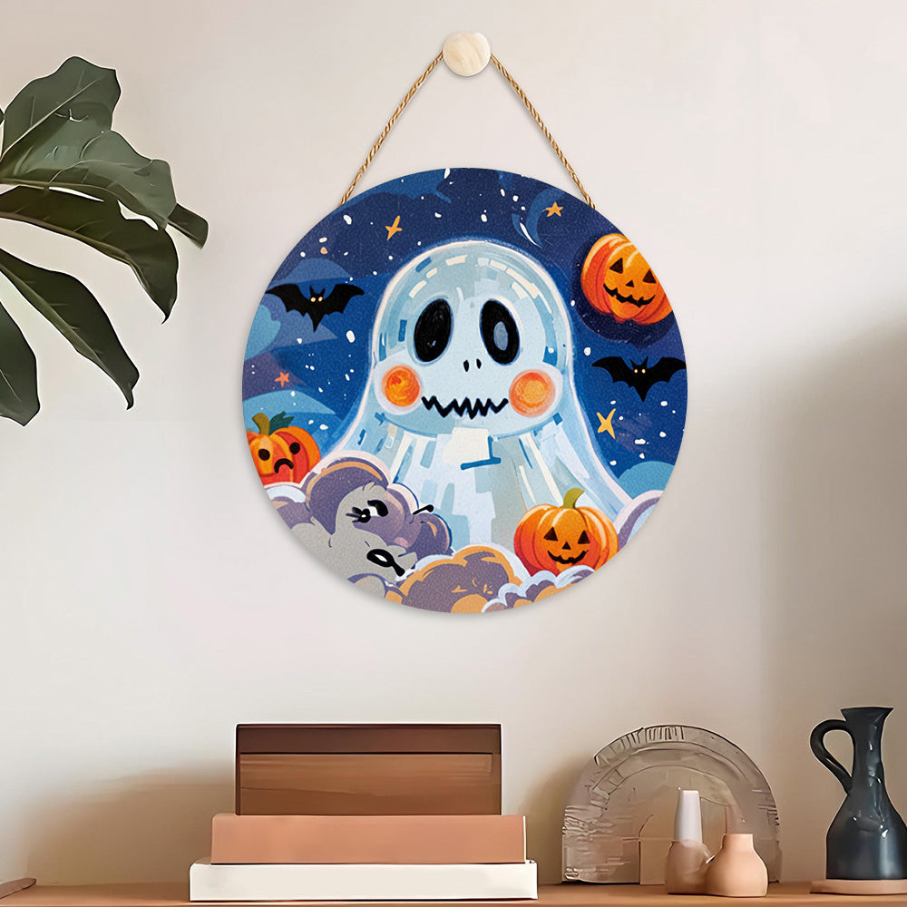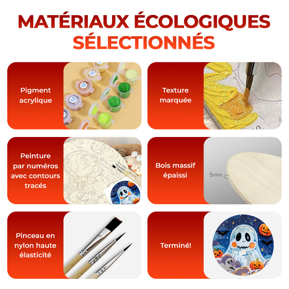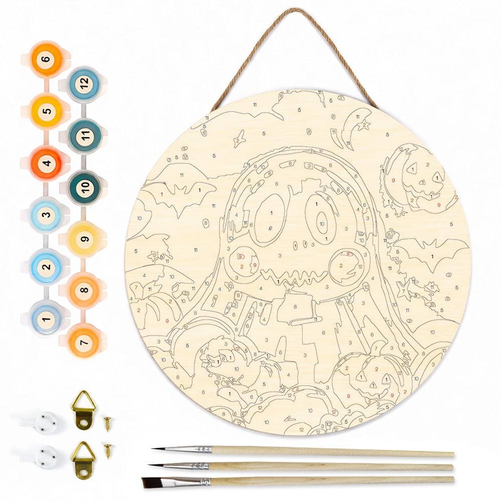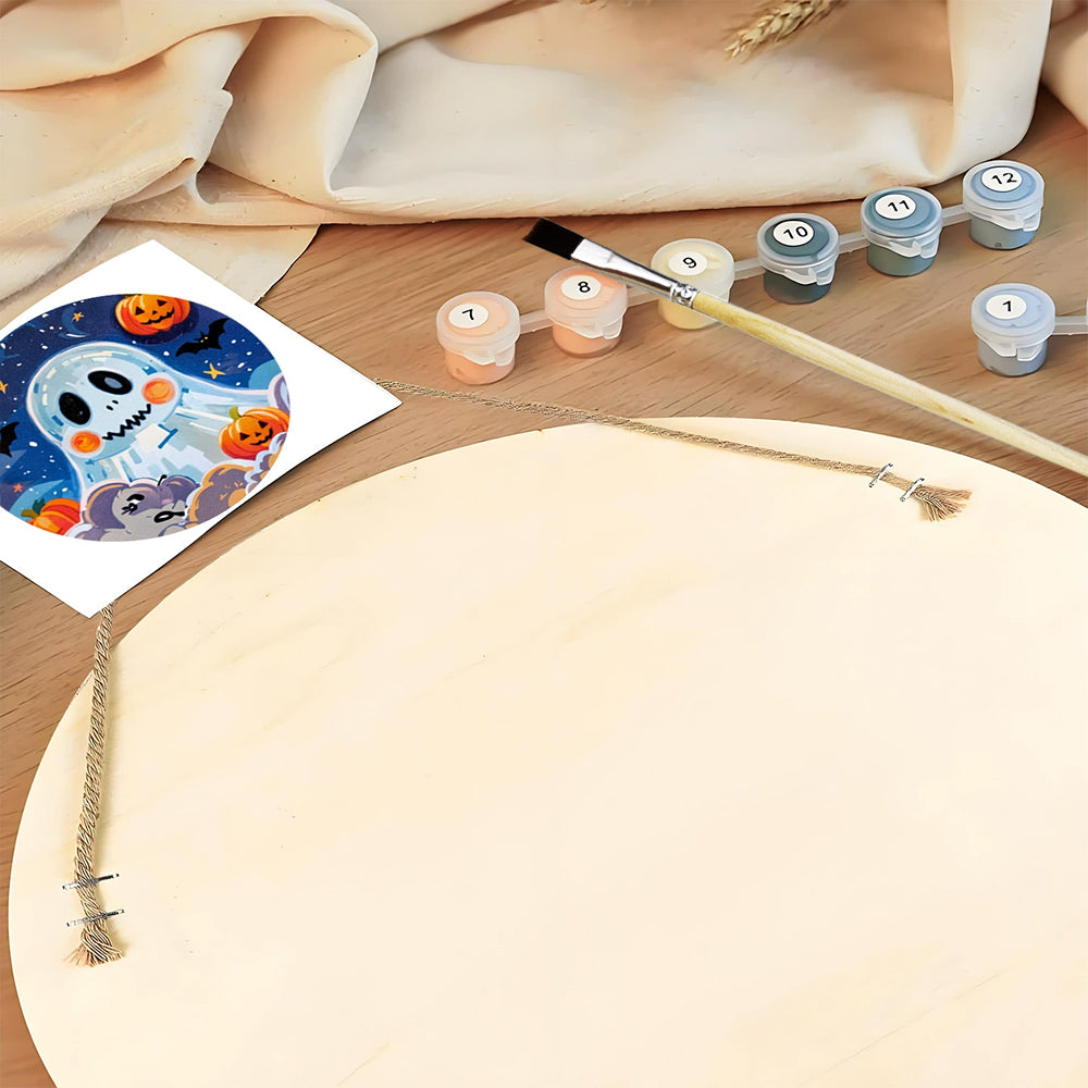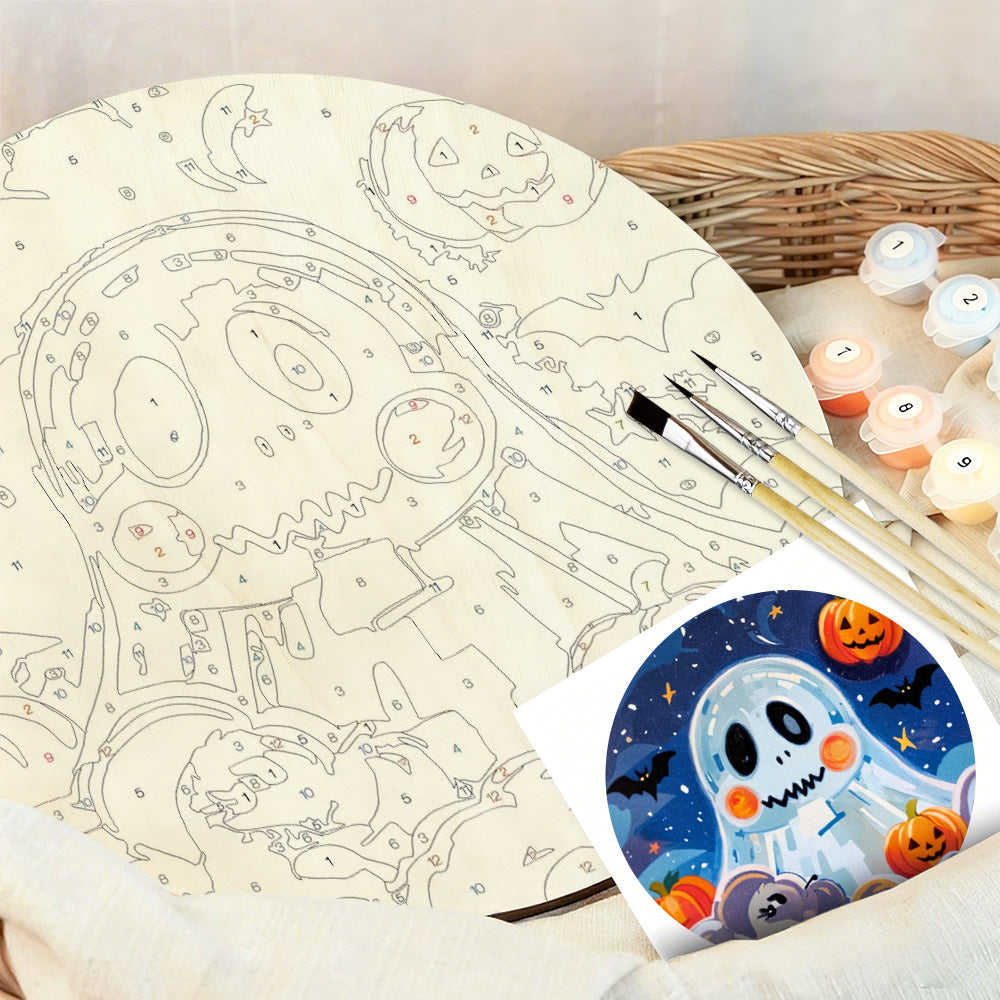 Peinture par Numéros sur Tranche de Bois - Fantôme d'Halloween Mignon et Lanternes Citrouilles
