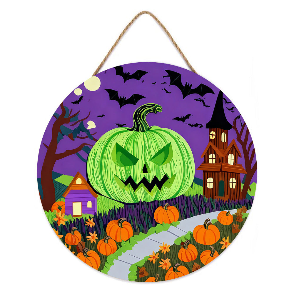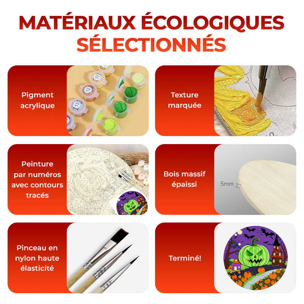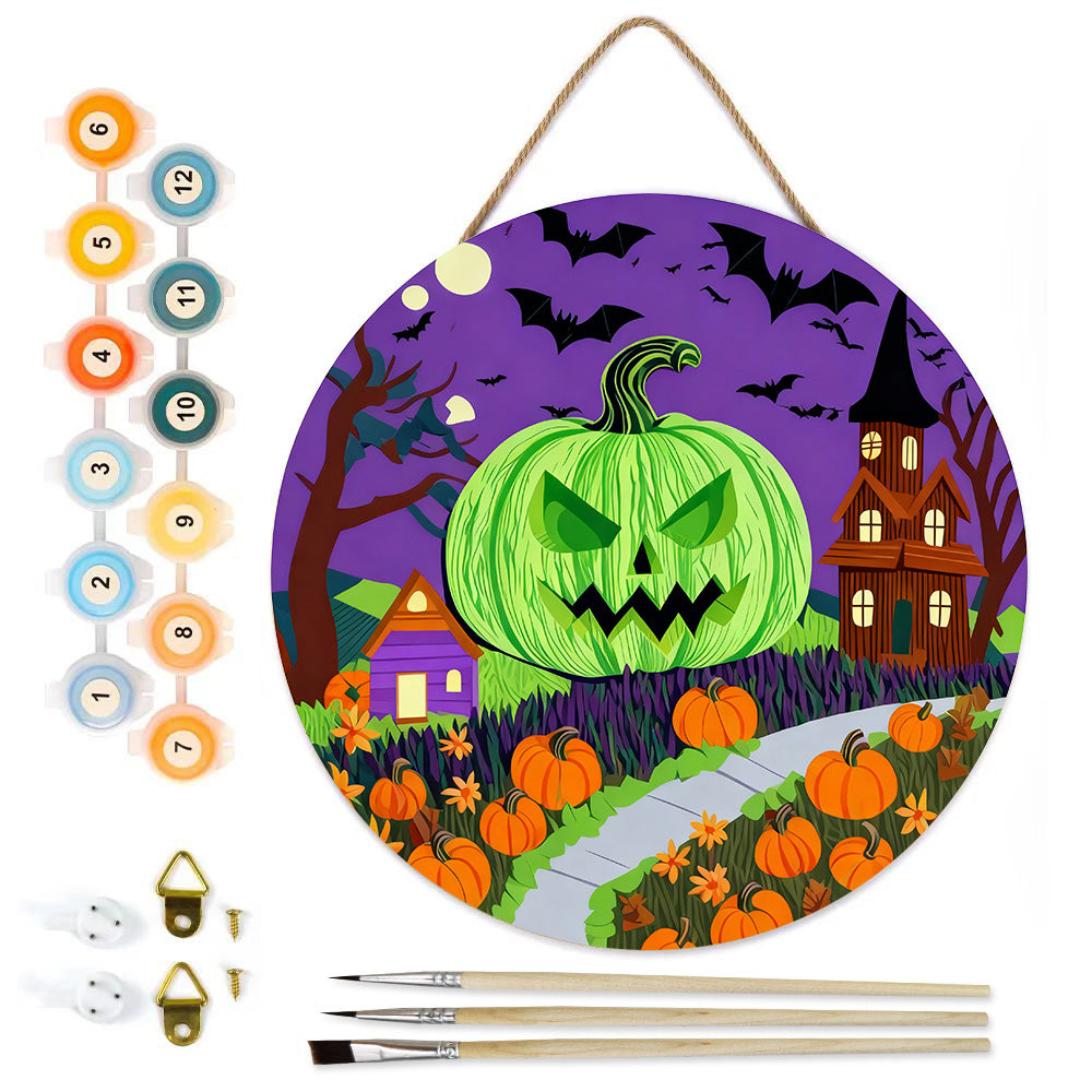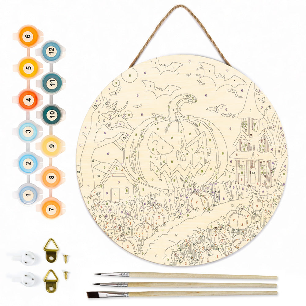 Peinture par Numéros sur Tranche de Bois - La Lanterne Citrouille Verte Terrifiante