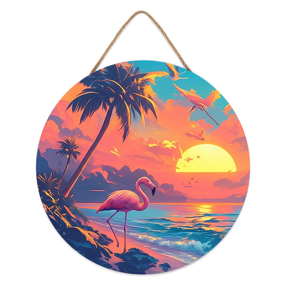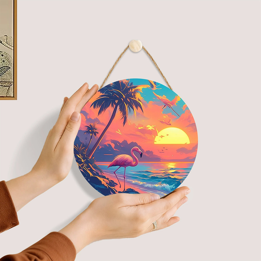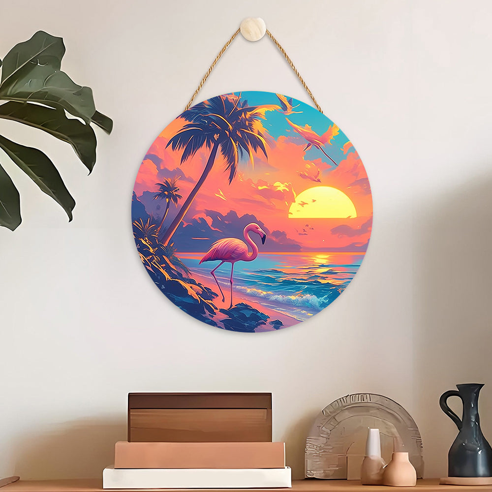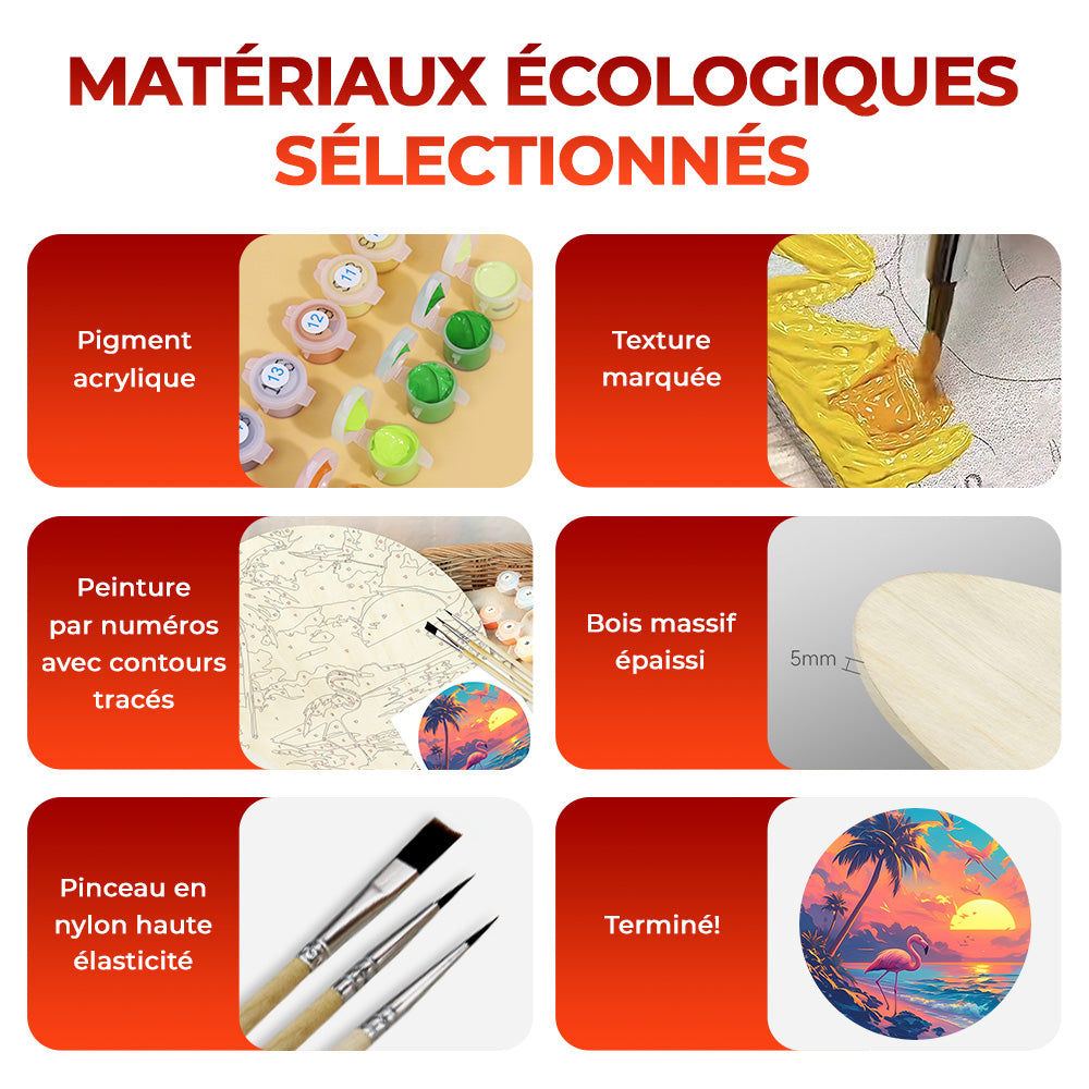 Peinture par Numéros sur Tranche de Bois - La Mer et Flamant Rose au Lever du Soleil