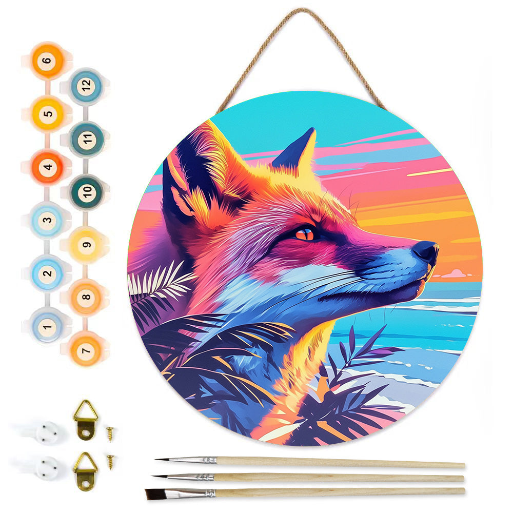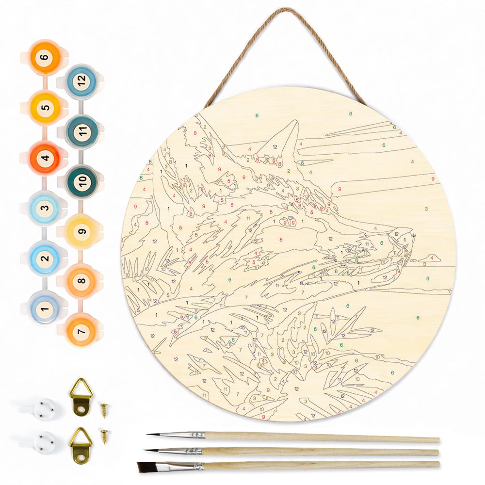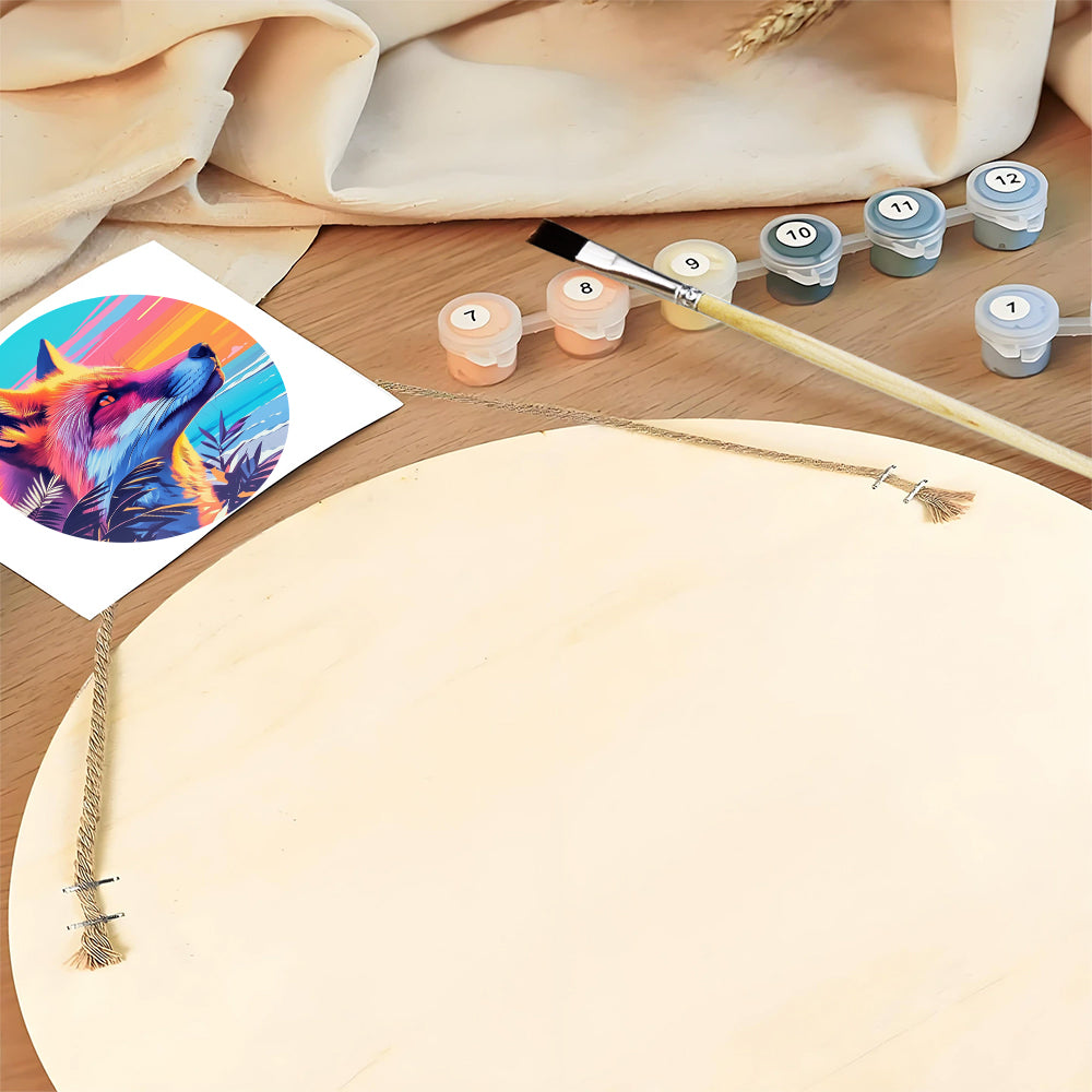 Peinture par Numéros sur Tranche de Bois - Le Loup Plein d'Espoir