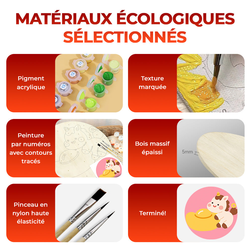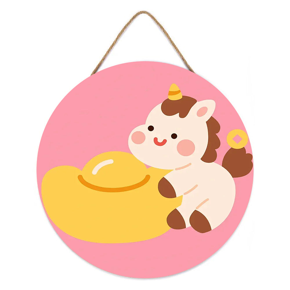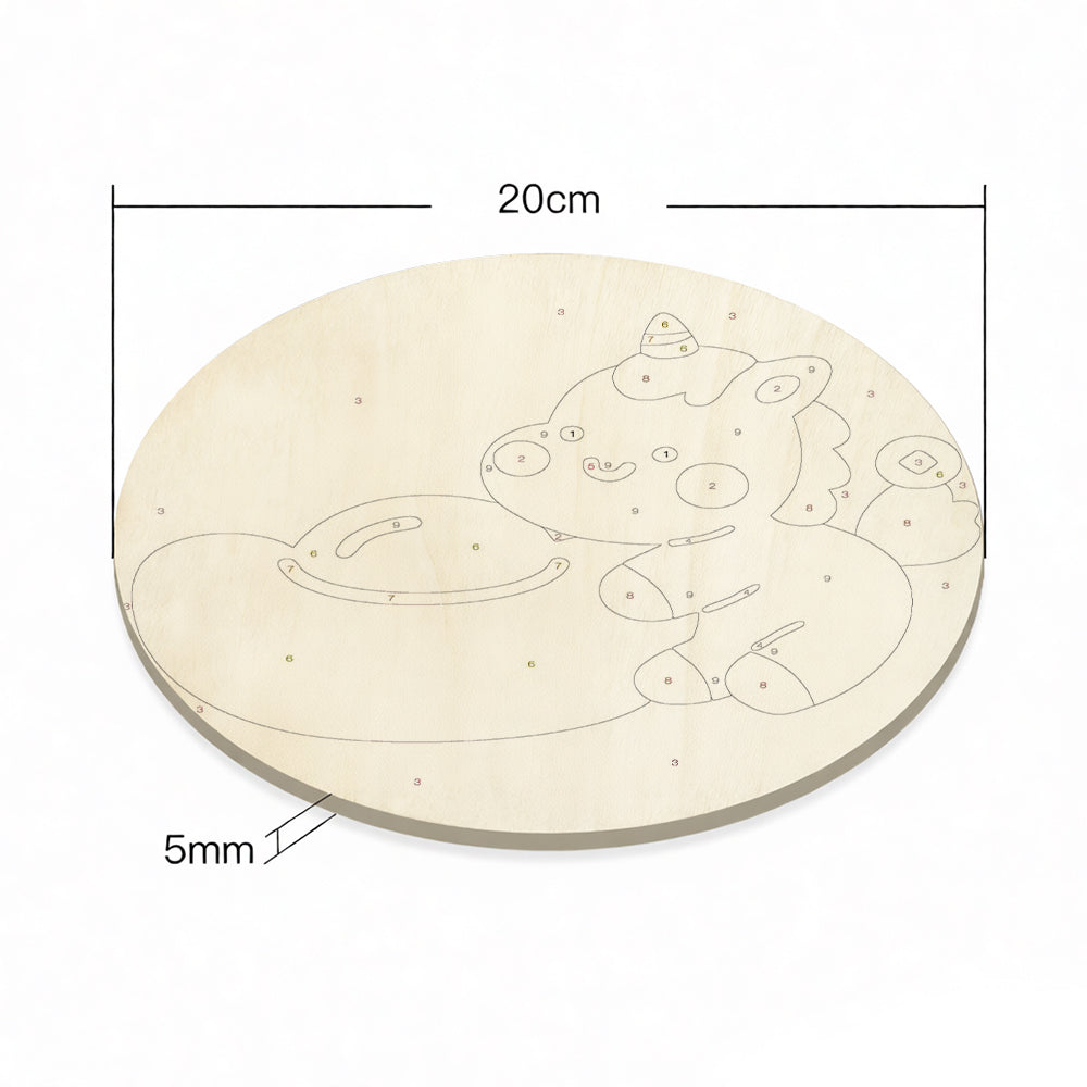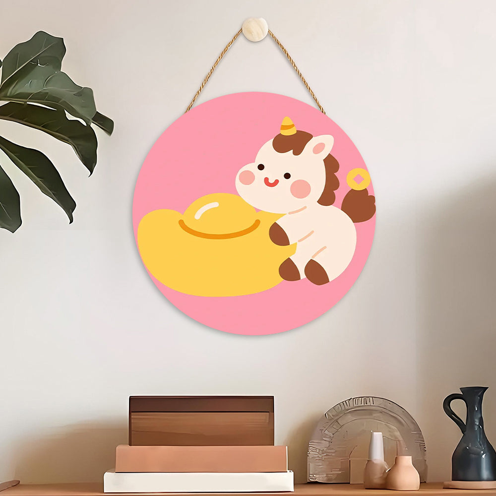 Peinture par Numéros sur Tranche de Bois - Licorne Mignonne et Lingot d'Or