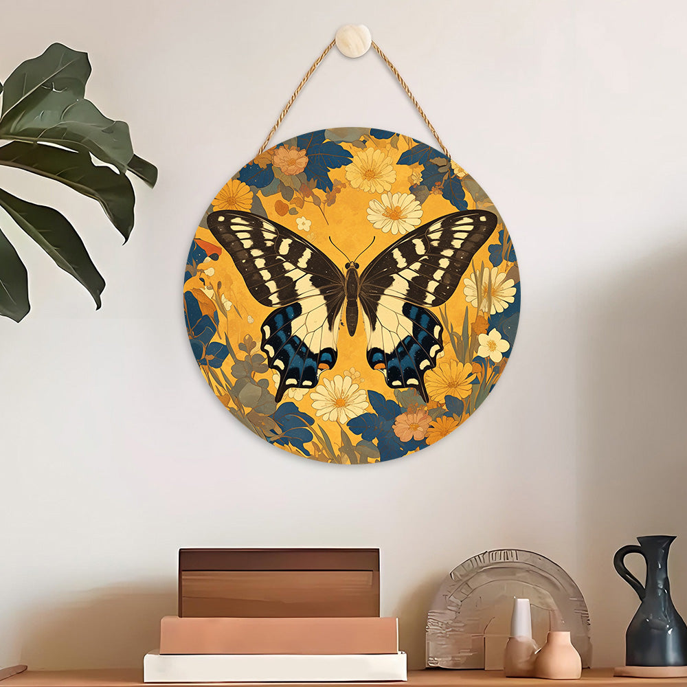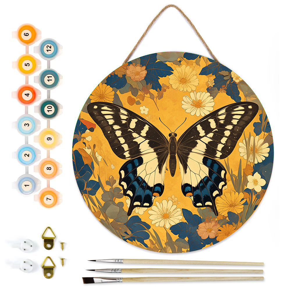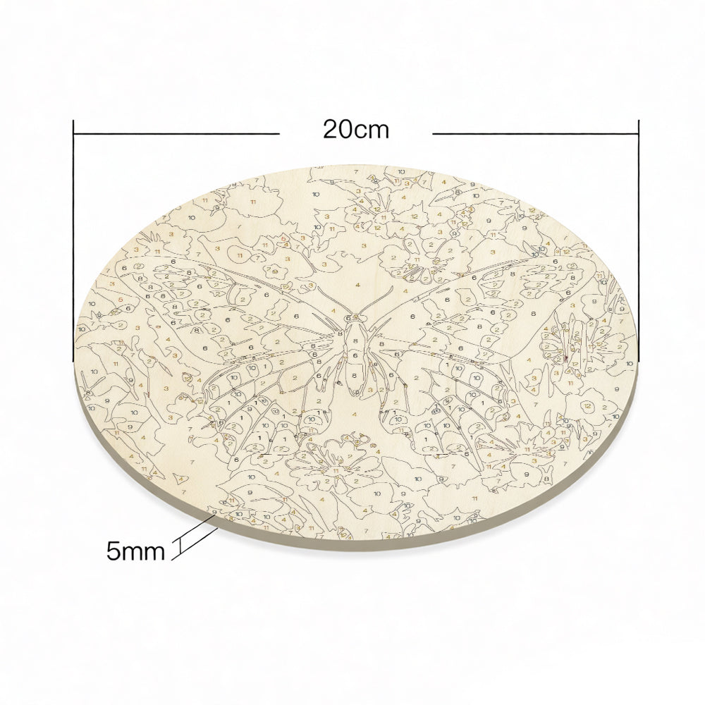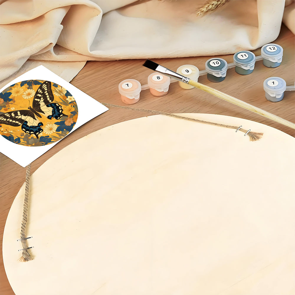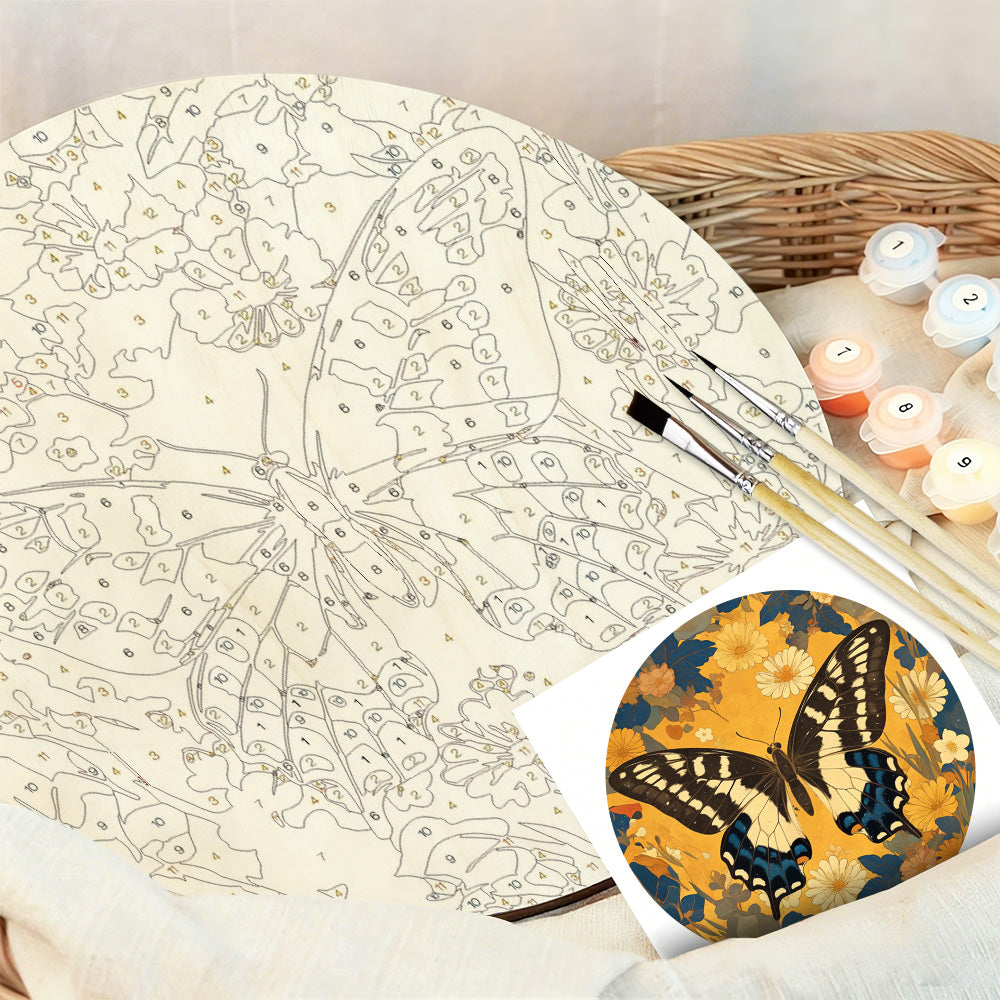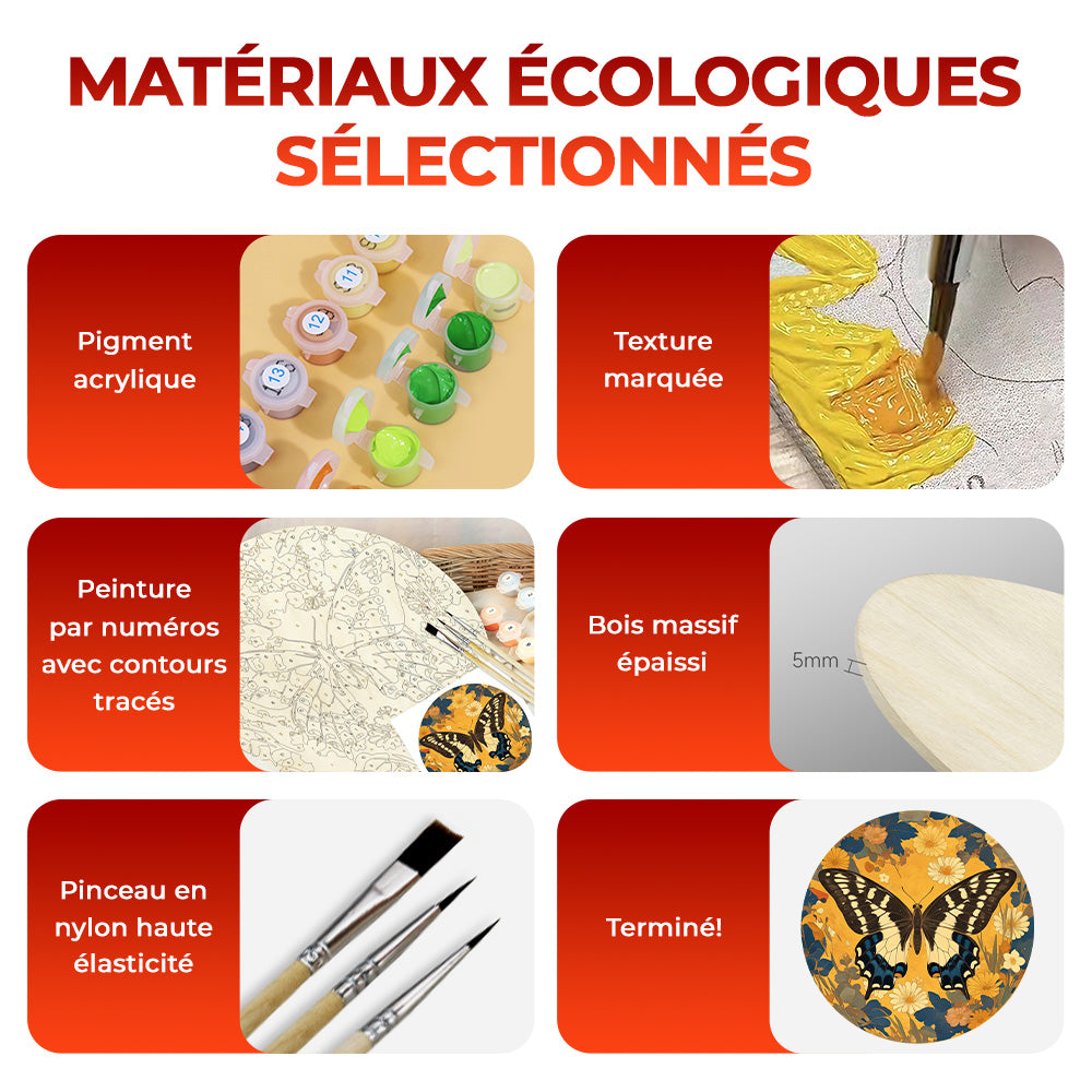 Peinture par Numéros sur Tranche de Bois - Papillon d'Automne et Fleurs