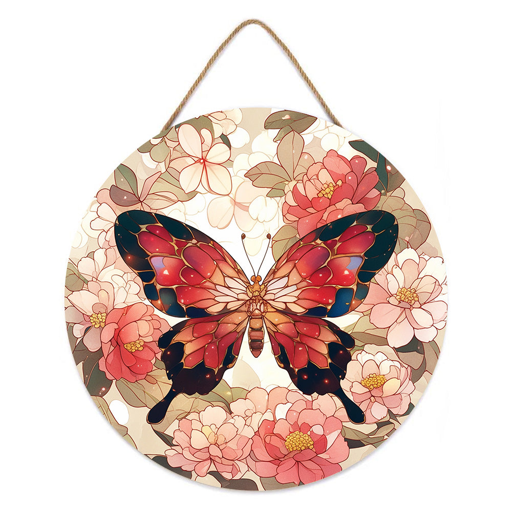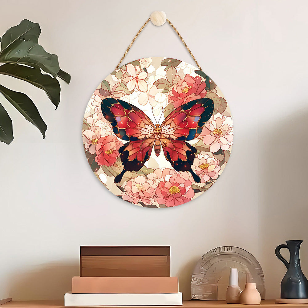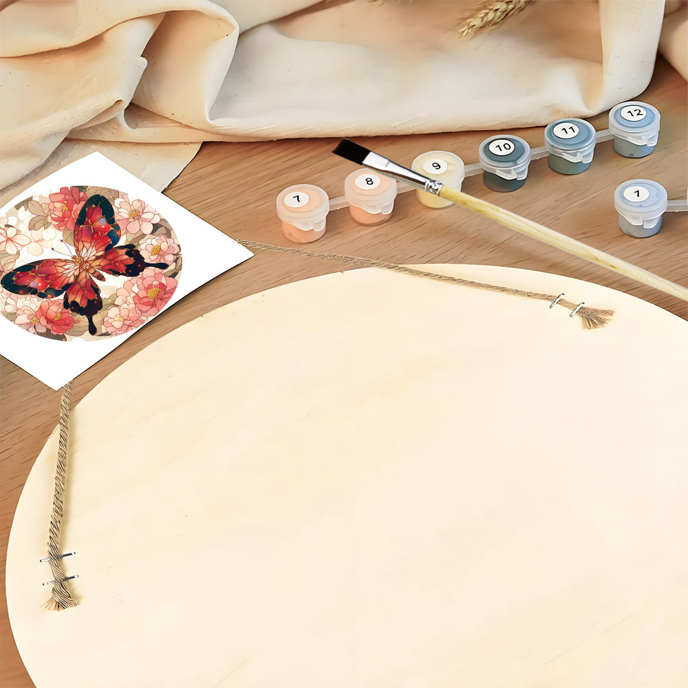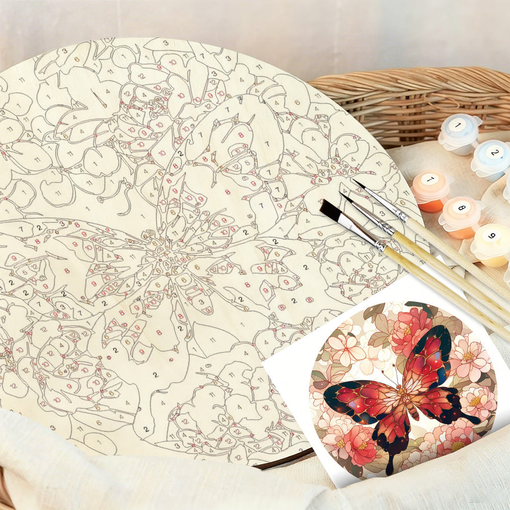 Peinture par Numéros sur Tranche de Bois - Papillon parmi les Pivoines Roses