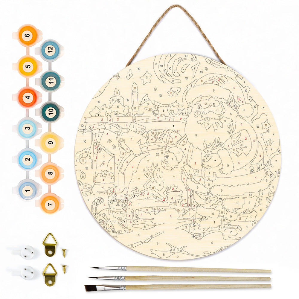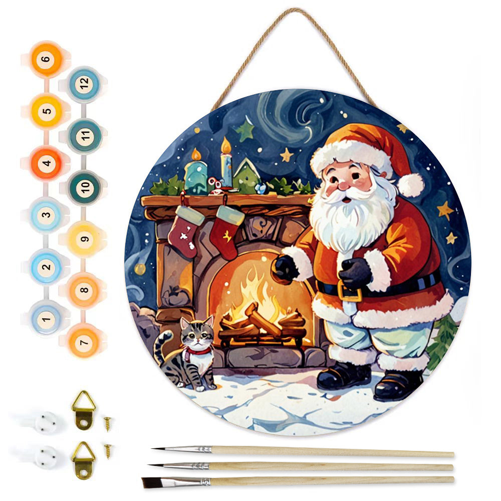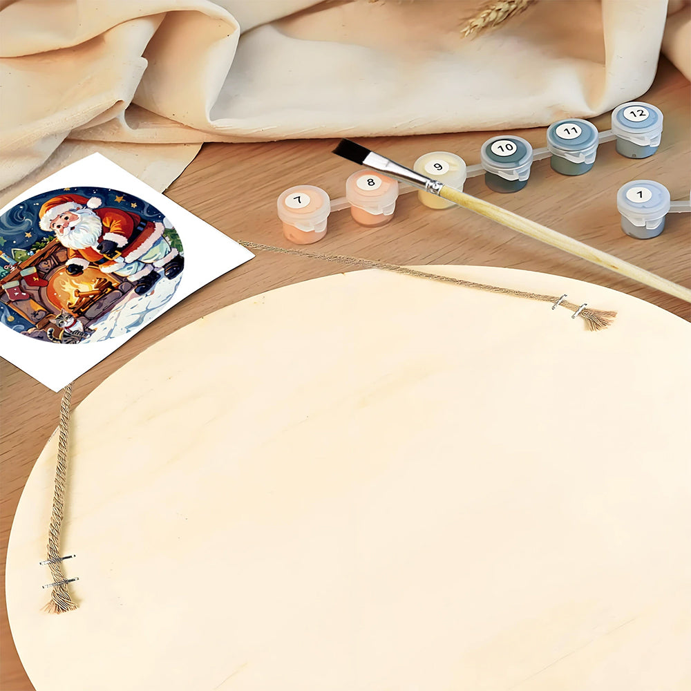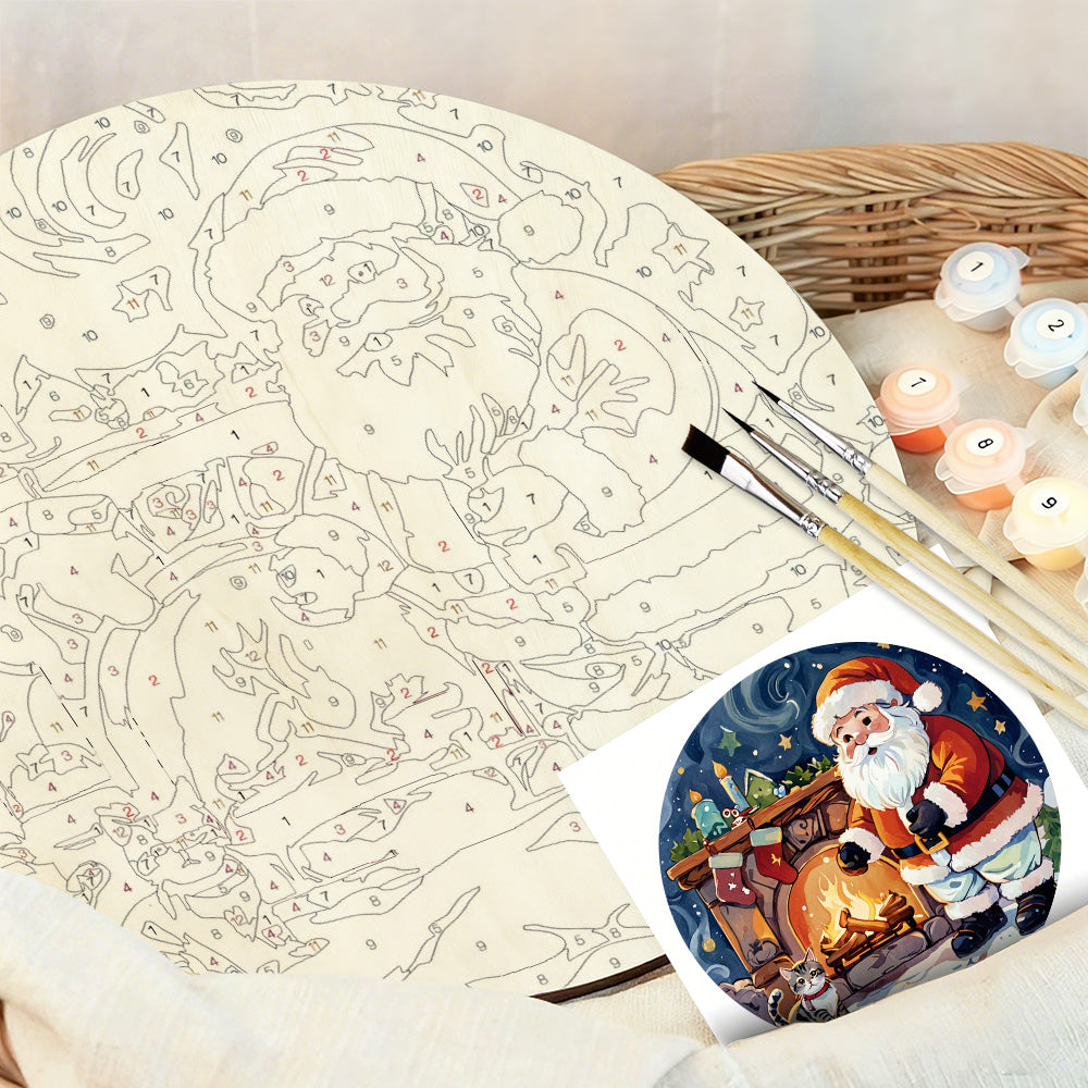 Peinture par Numéros sur Tranche de Bois - Père Noël près de la Cheminée