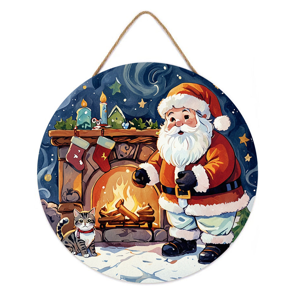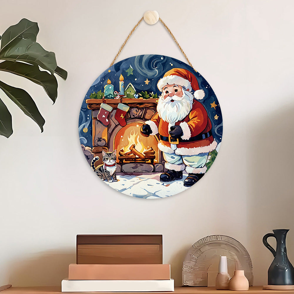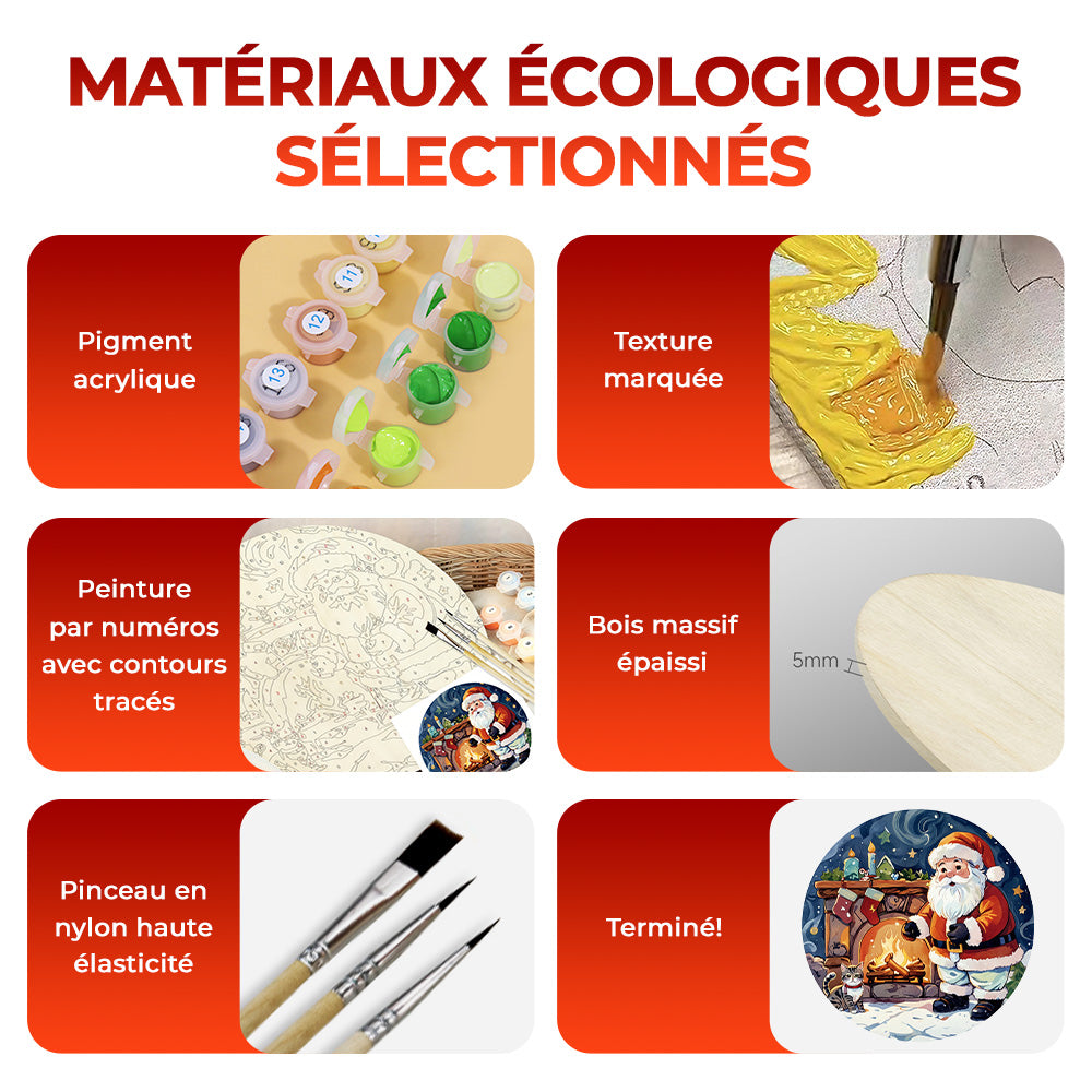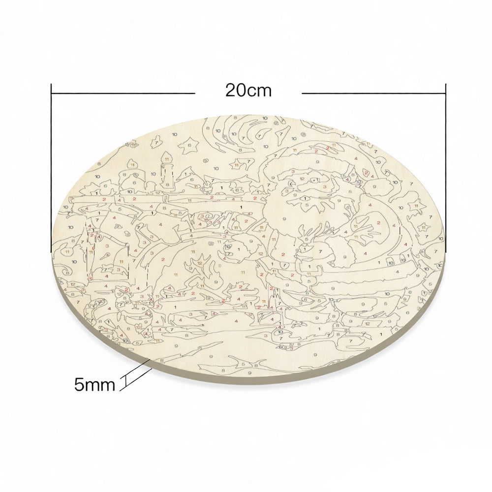 Peinture par Numéros sur Tranche de Bois - Père Noël près de la Cheminée