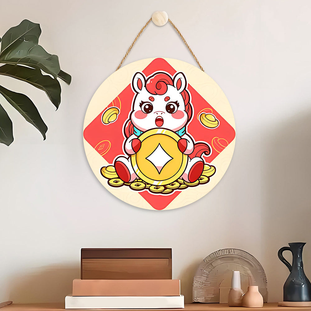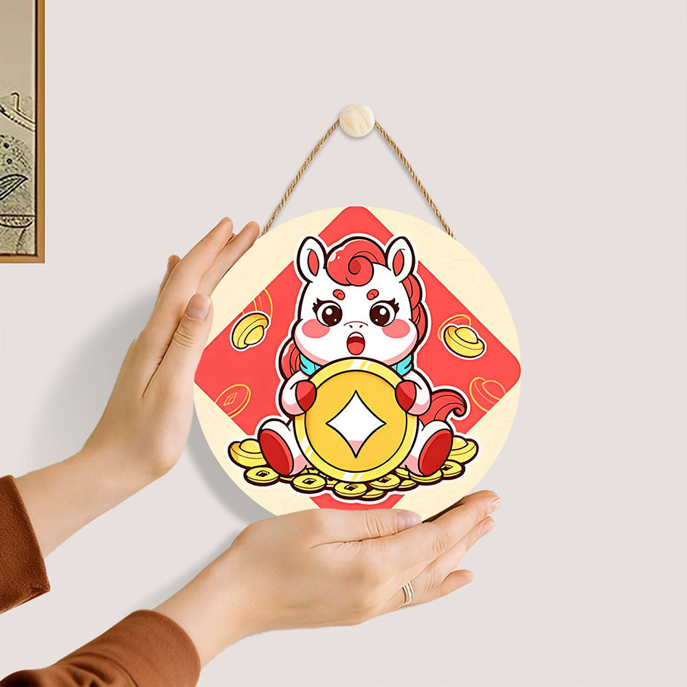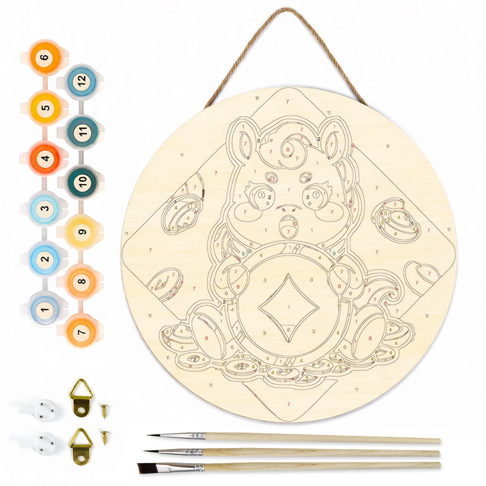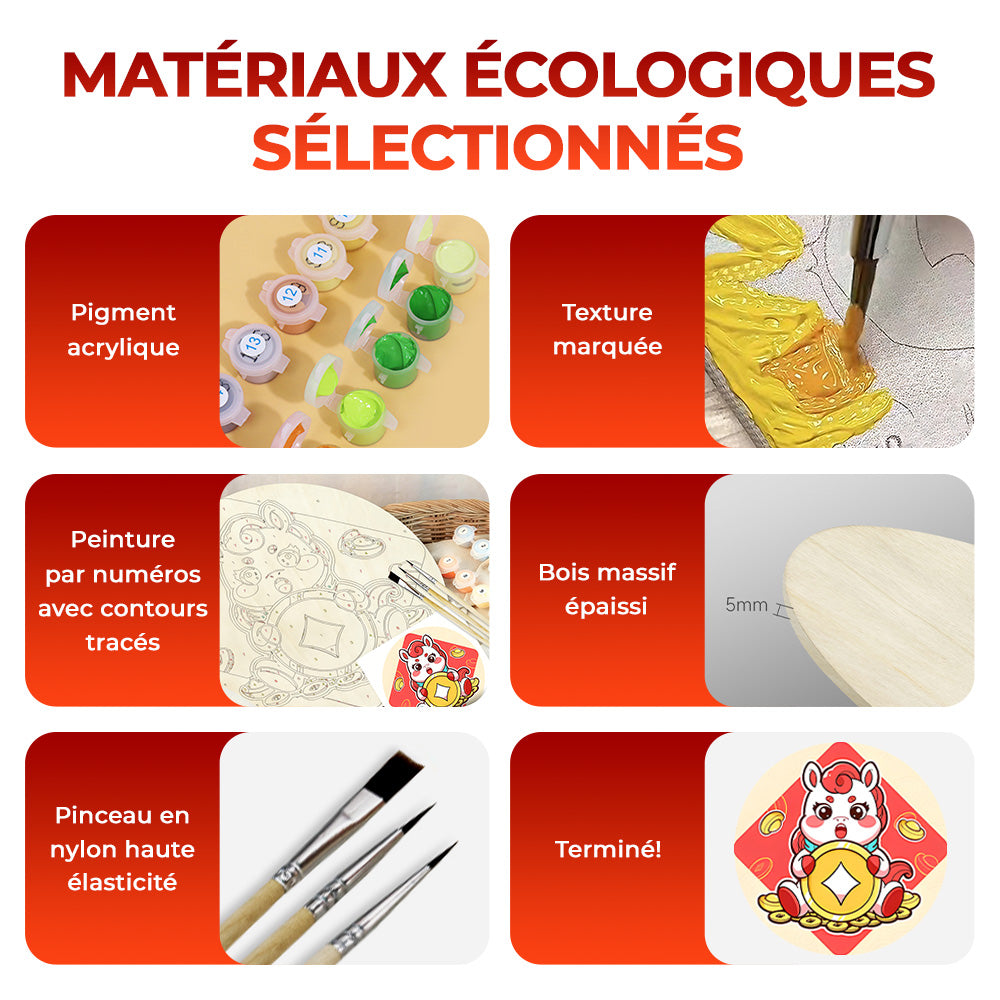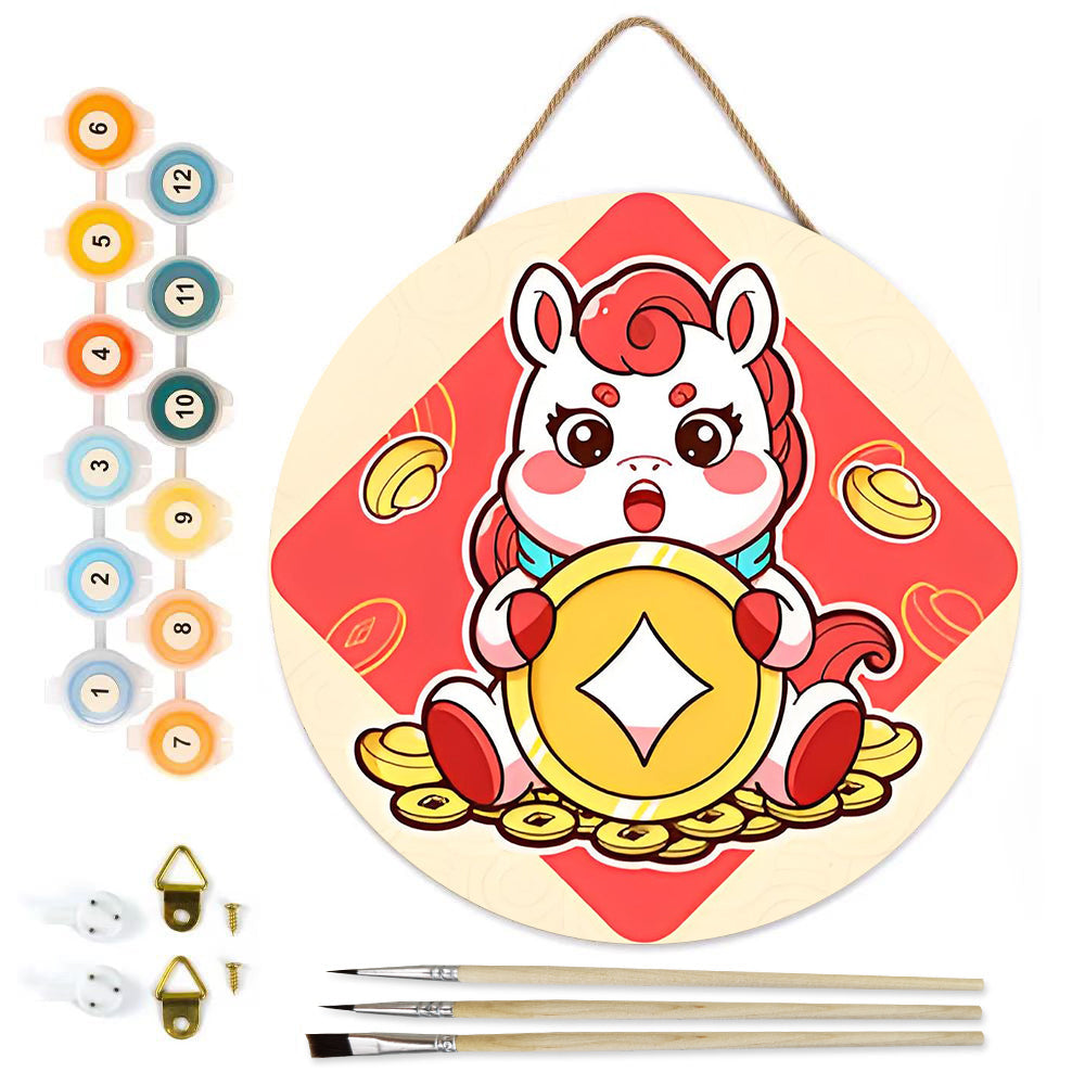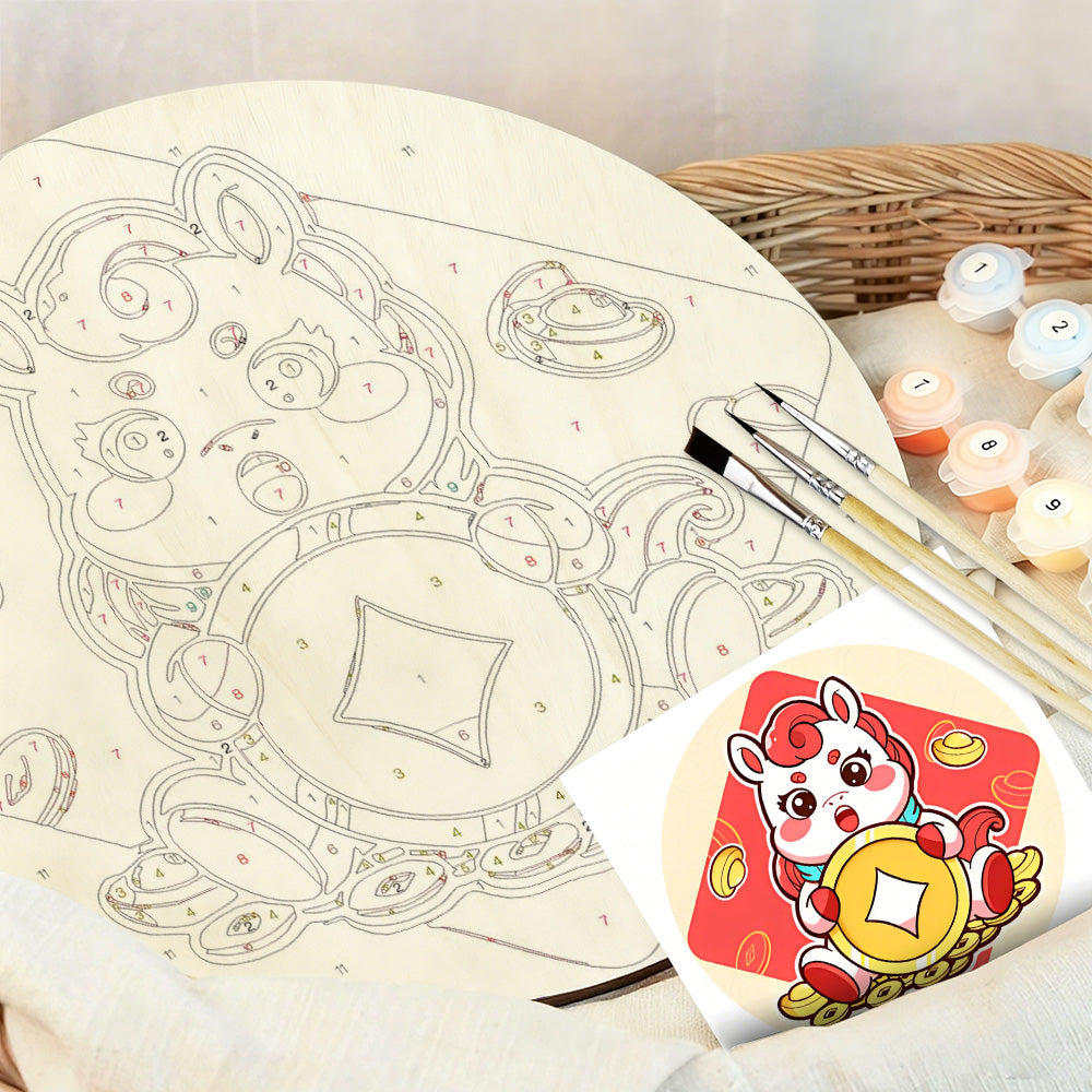 Peinture par Numéros sur Tranche de Bois - Pièces de Cuivre de l'Année du Cheval