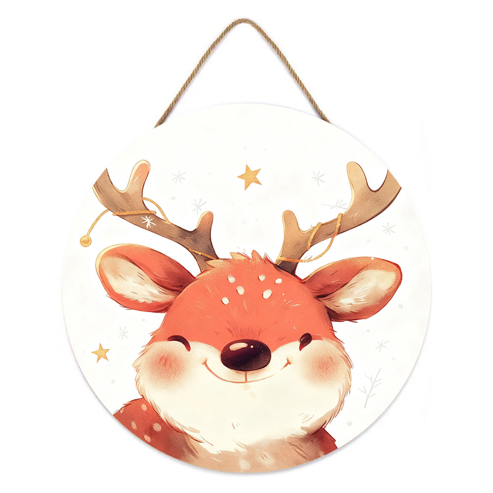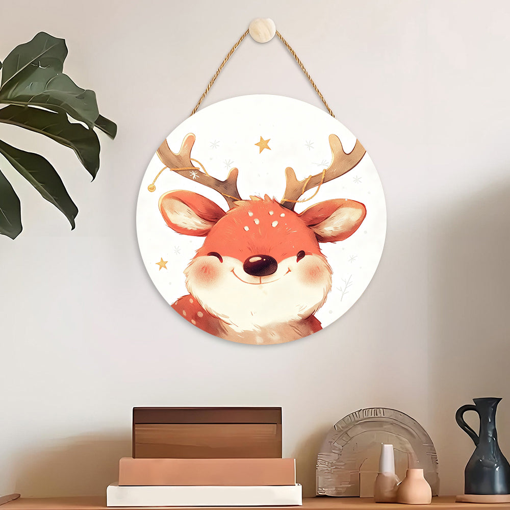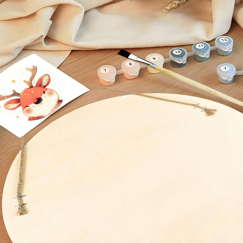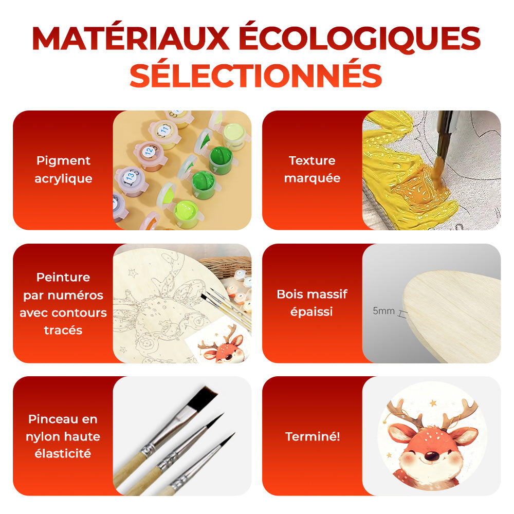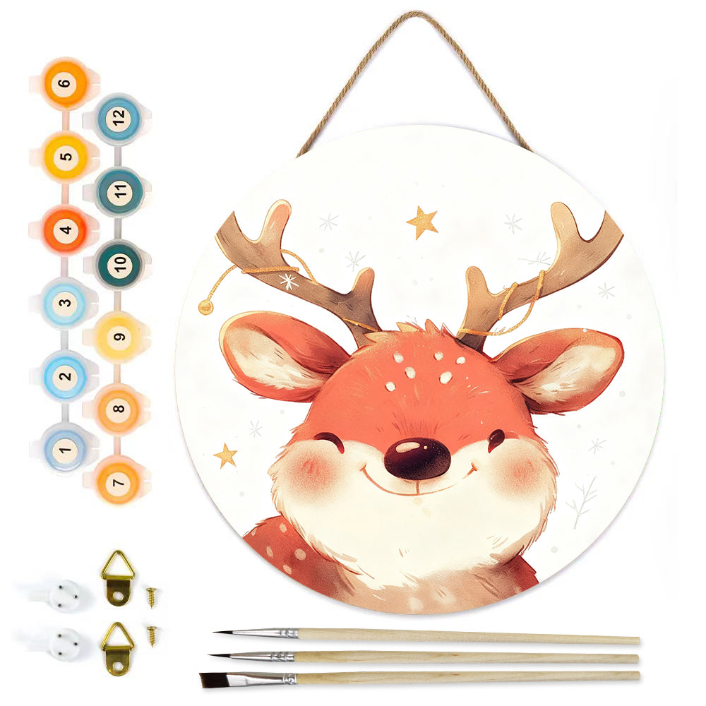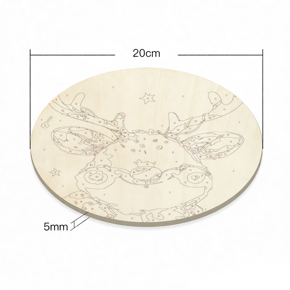 Peinture par Numéros sur Tranche de Bois - Renne de Noël Mignon