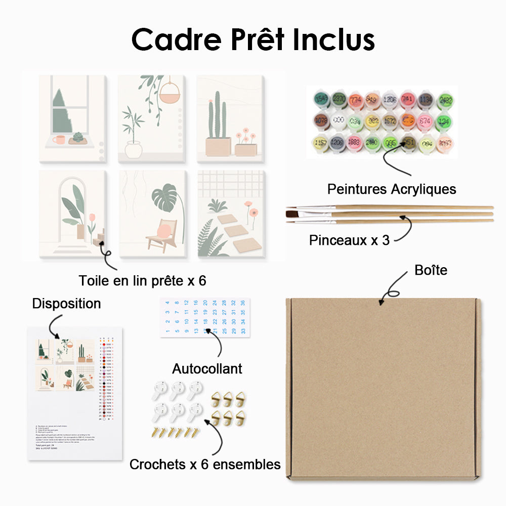 Plantes Vertes Simples et Calmes 6 Mini Peintures par Numéros