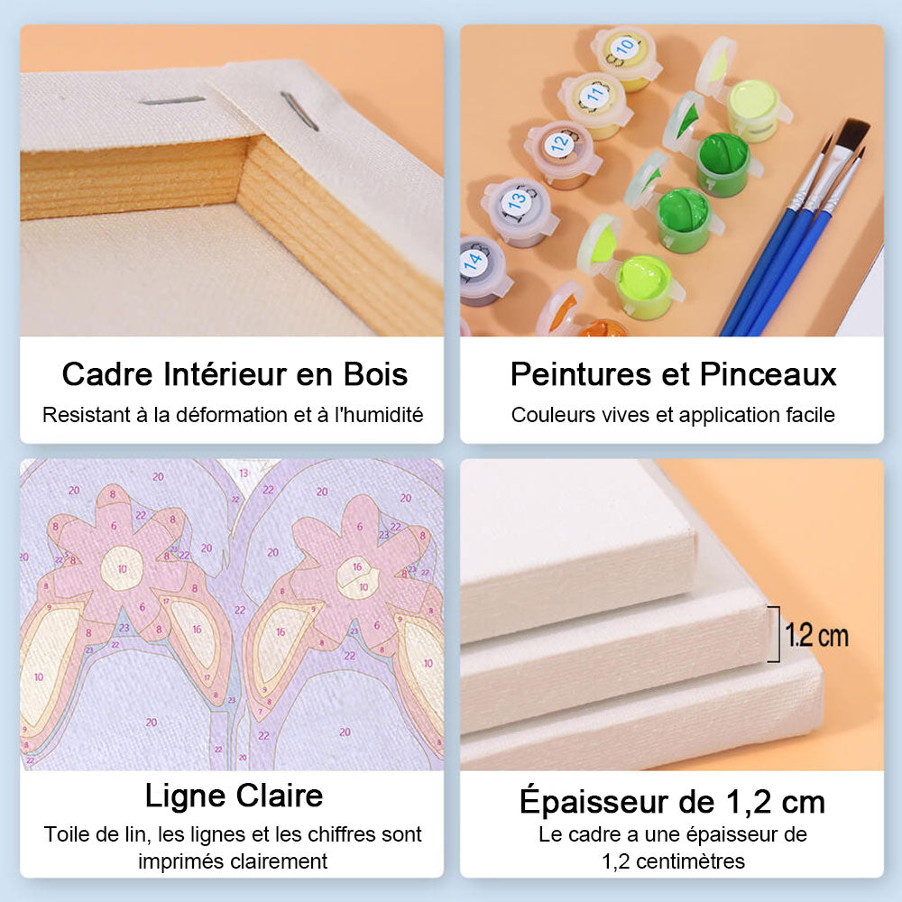 Facile à Peindre - Le kit de Peinture par Numéros est facile à utiliser. Chaque zone de la toile est numérotée et correspond à une couleur. Suivez les instructions, peignez par numéros, et complétez le tableau.