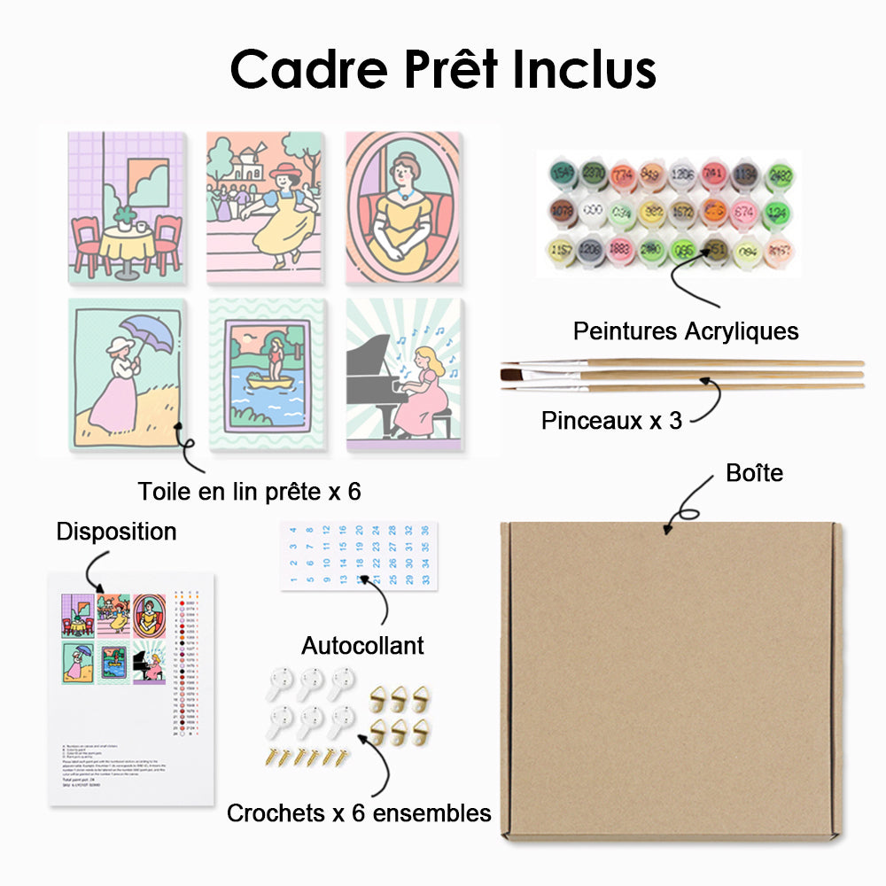 Une Fille Polyvalente et Raffinée 6 Mini Peintures par Numéros