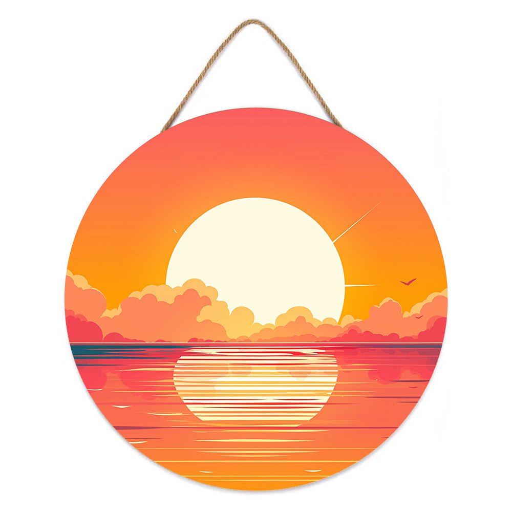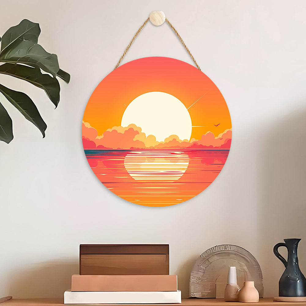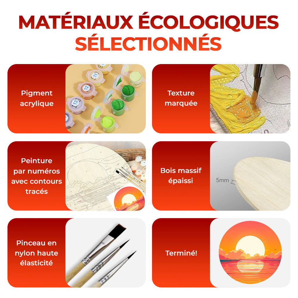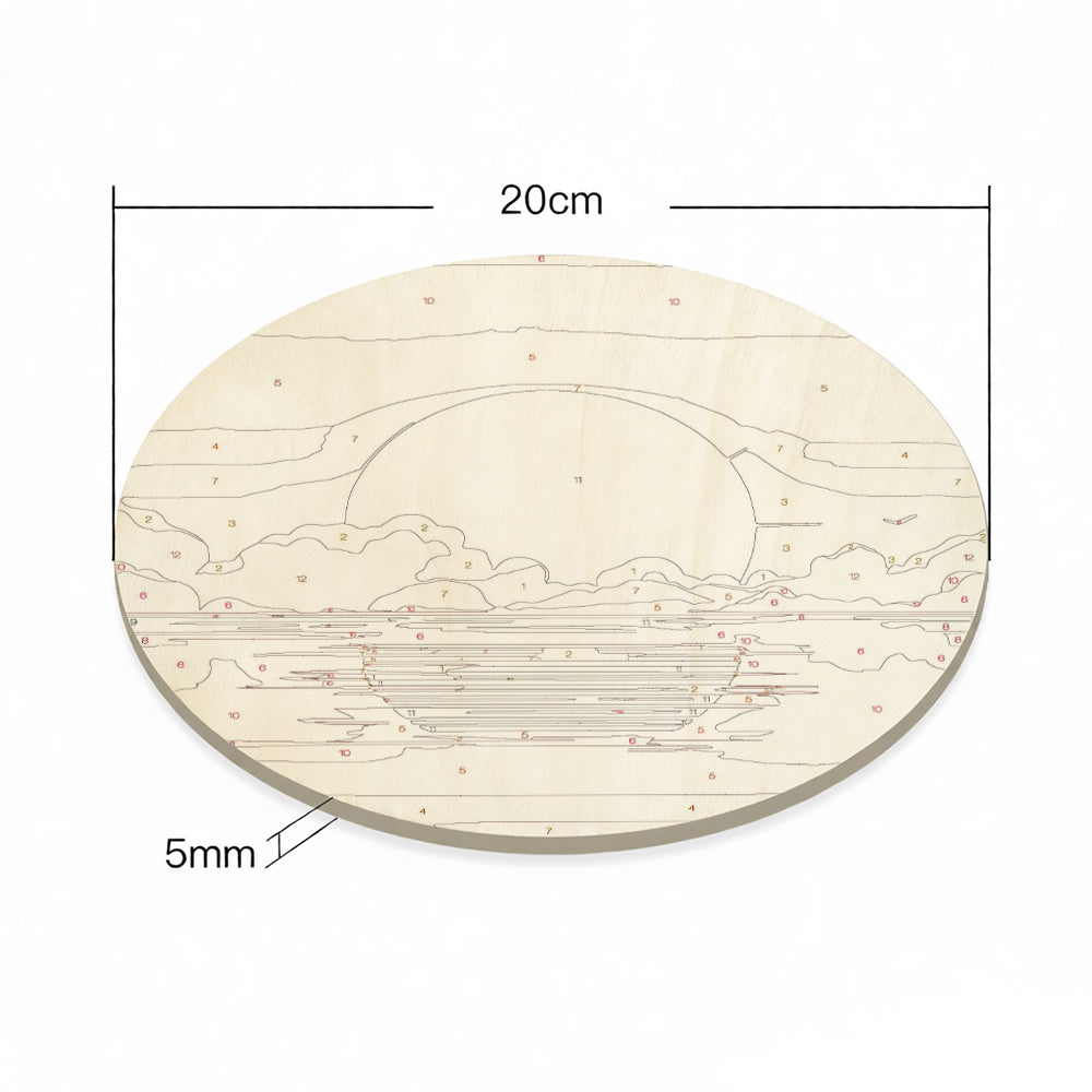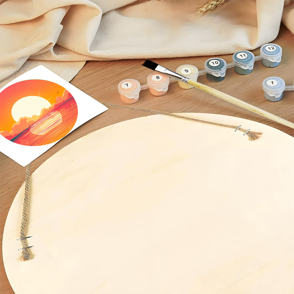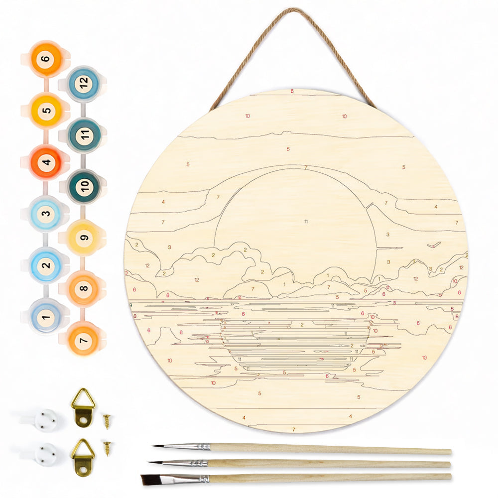 Peinture par Numéros sur Tranche de Bois - Un Magnifique Lever de Soleil sur la Mer