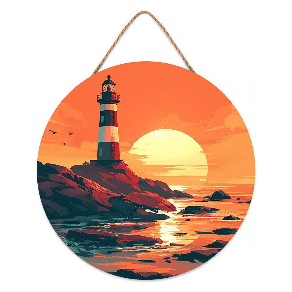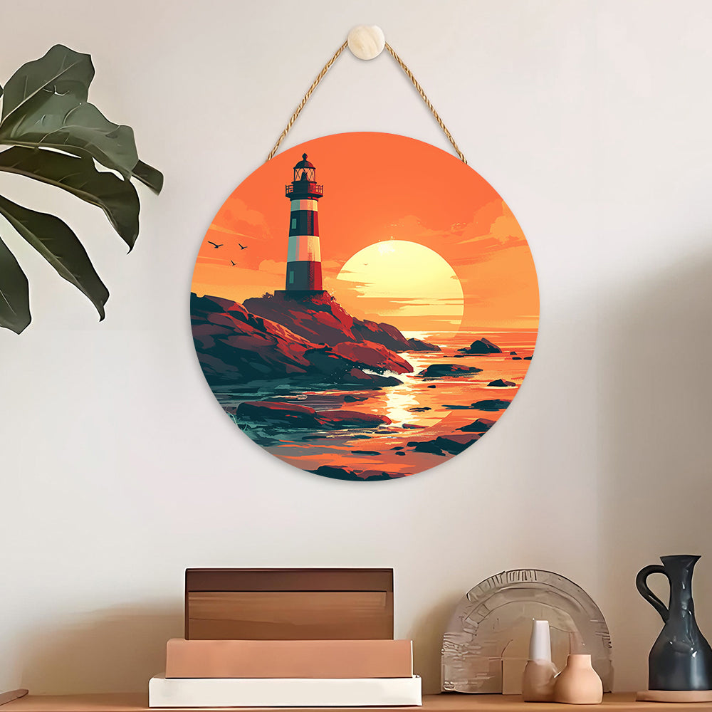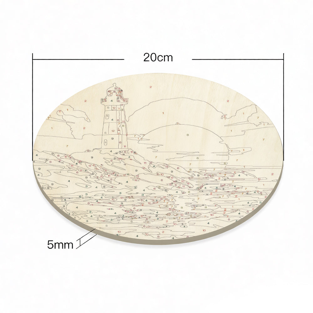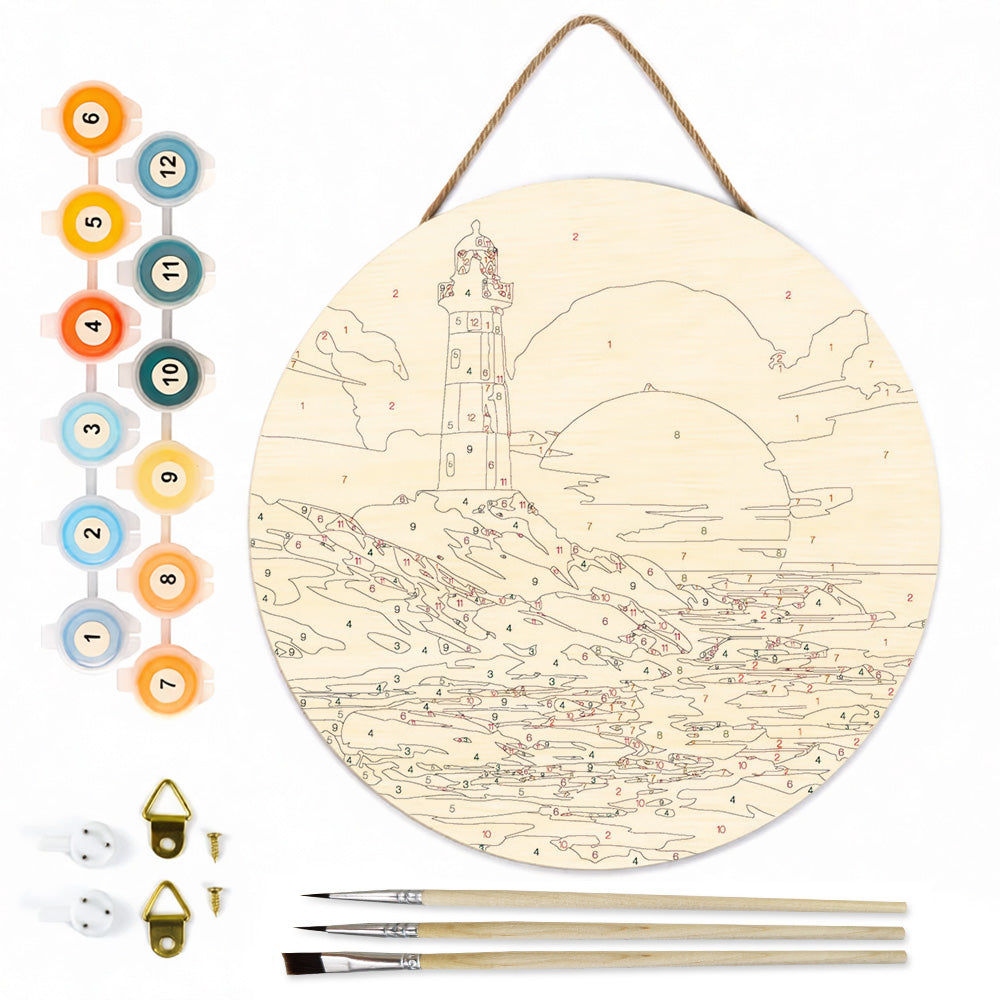 Peinture par Numéros sur Tranche de Bois - Un Phare au Coucher du Soleil