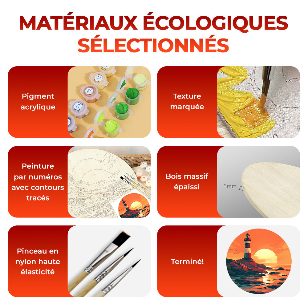 Matériaux Sains - Peintures acryliques de haute qualité qui sont non toxiques, inodores et respectueuses de l'environnement. Les couleurs ont un éclat naturel. La toile en huile avec impression haute résolution ne se décolore pas facilement et ne fatigue pas les yeux.