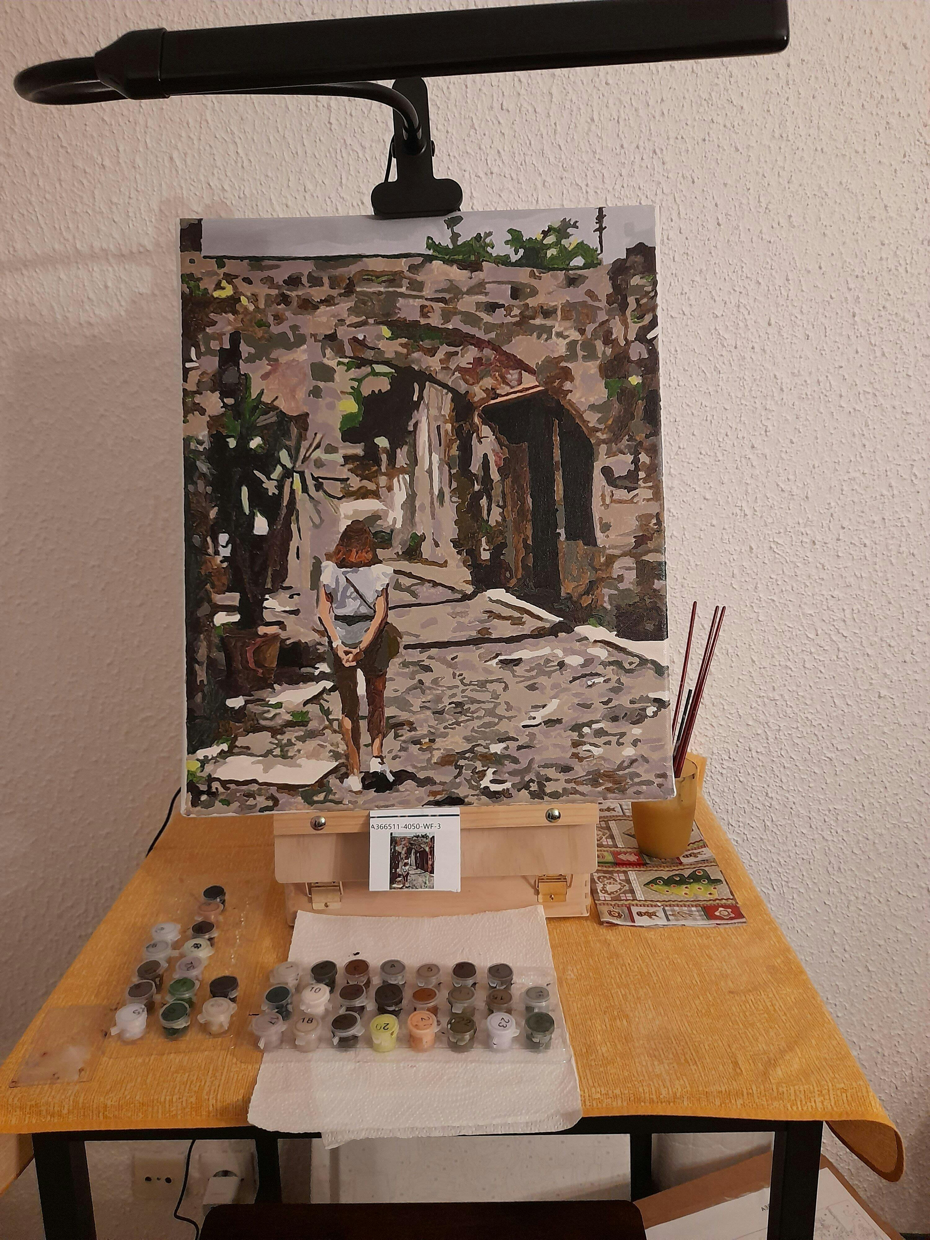 Kit complet de peinture par numéros comportant une toile déjà tendue sur un châssis en bois. 100% prêt à l'emploi.